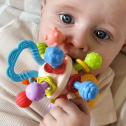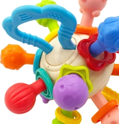 Apvieno graužamriņķa un grabulīša īpašības, piedāvājot bērniem dažādus rotaļu veidus.
