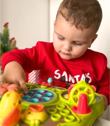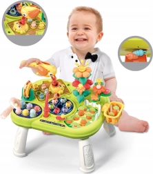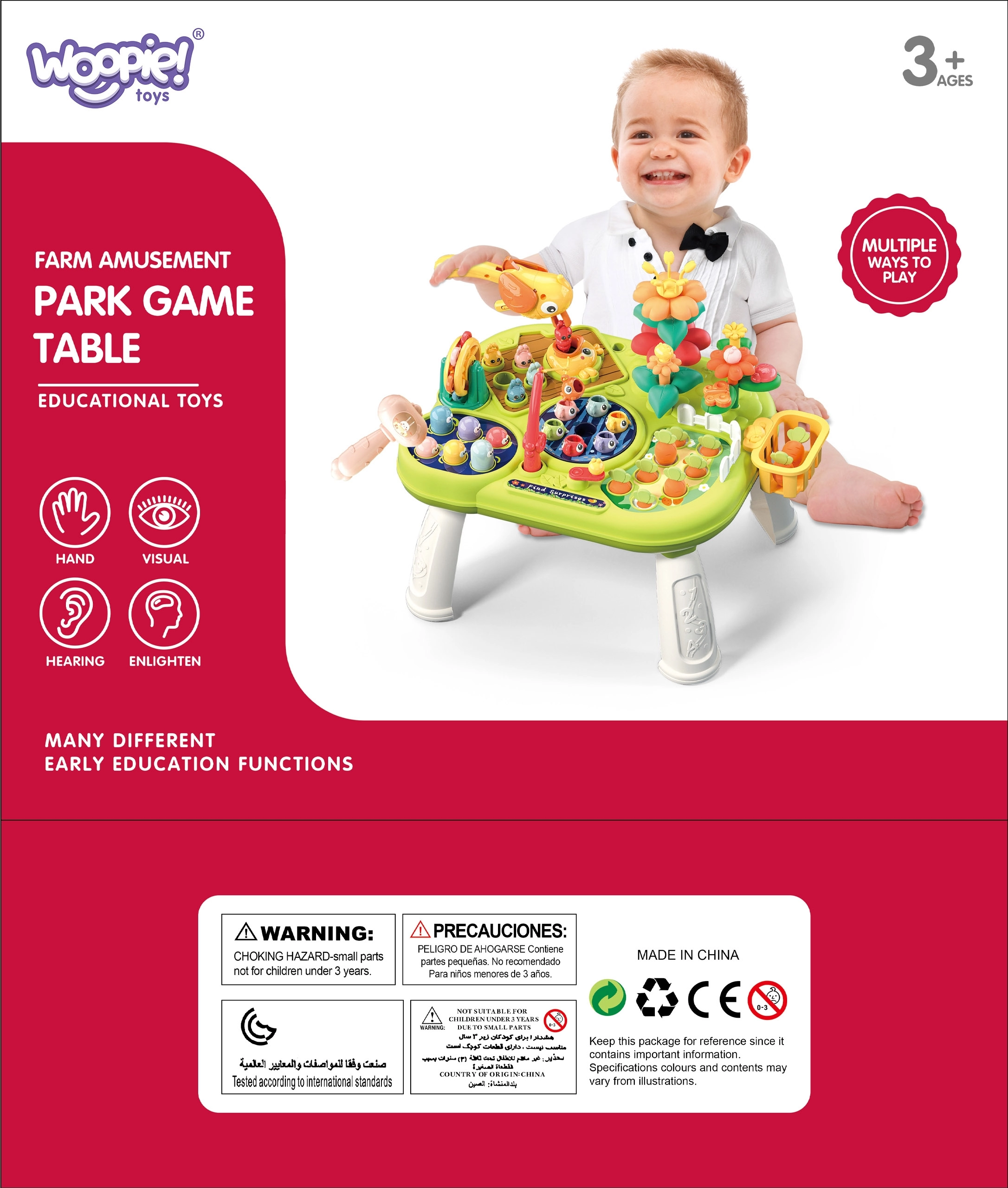 Interaktīvais multigaldiņš WOOPIE apvieno bērniem izklaidi un attīstību. Pateicoties 8 aktivitātēm 1 komplektā, tas sniedz ilgas atklājumu stundas: zivtiņu ķeršana, tārpiņu dauzīšana ar āmuriņu, dārzkopība ar ziediem un burkāniem, kā arī rotaļas ar putniņu, izvelkot tārpiņu. Veicina sīko motoriku, pacietību, koncentrēšanos un roku–acu koordināciju.