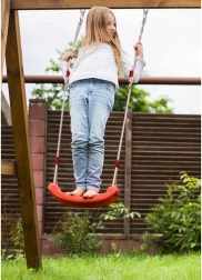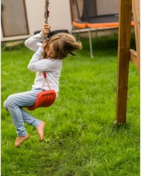 Sarkanās plastmasas šūpoles ar ergonomiski veidotu sēdekli piedāvā bērniem izklaidi un motorikas attīstību gan dārzā, gan mājās. Pateicoties izturīgajām virvēm ar garumu, ko var regulēt 105–175 cm diapazonā, viegli pielāgosiet piekāršanas augstumu dažādām vietām – no bērnistabas līdz terasei vai pergolai.
