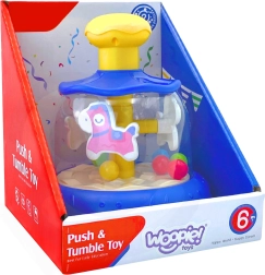 Atklājiet pasauli rotaļās ar inovatīvo rotaļlietu "Izklaidējošais karuselis"! Tā ir veidota pašiem mazākajiem pētniekiem un palīdz attīstīt viņu motorās, sensorās un kognitīvās spējas. Bērnam tikai jānospiež dzeltenā karuseļa augšējā daļa, un zirgs ar bumbiņām sāk kustēties.
