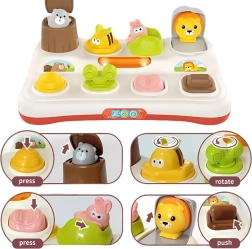 Atklājiet izklaidi un mācīšanos vienā ar interaktīvo WOOPIE rotaļlietu – izlecošie ZOO dzīvnieki. Aktivizējot ar slēdzi, grozāmu vadības ritenīti vai pogām, dzīvnieciņš izslīd un pārsteidz bērnu. Rotaļlieta ir izturīga, kvalitatīvi izgatavota un lieliski veicina sīko motoriku un izpratni par cēloņu-seku saistībām.