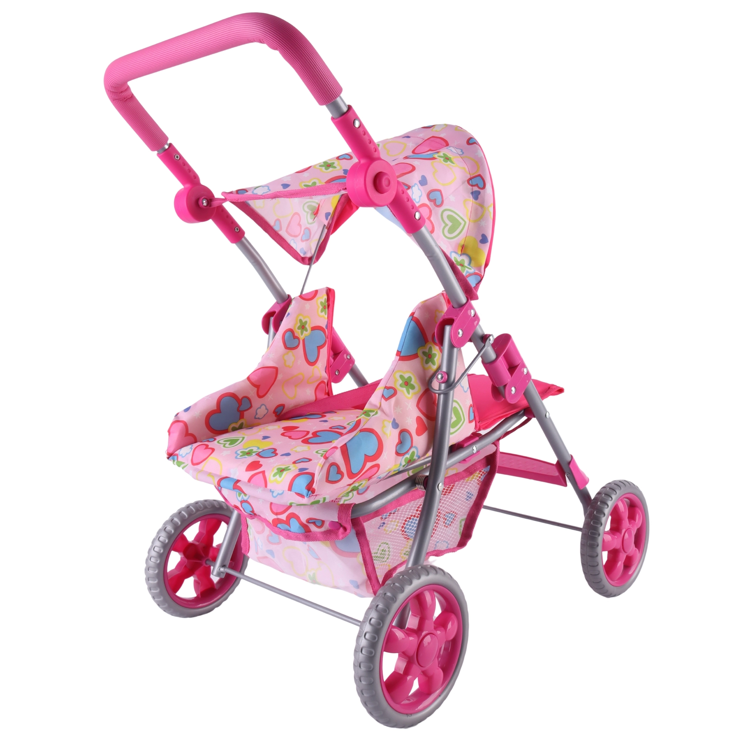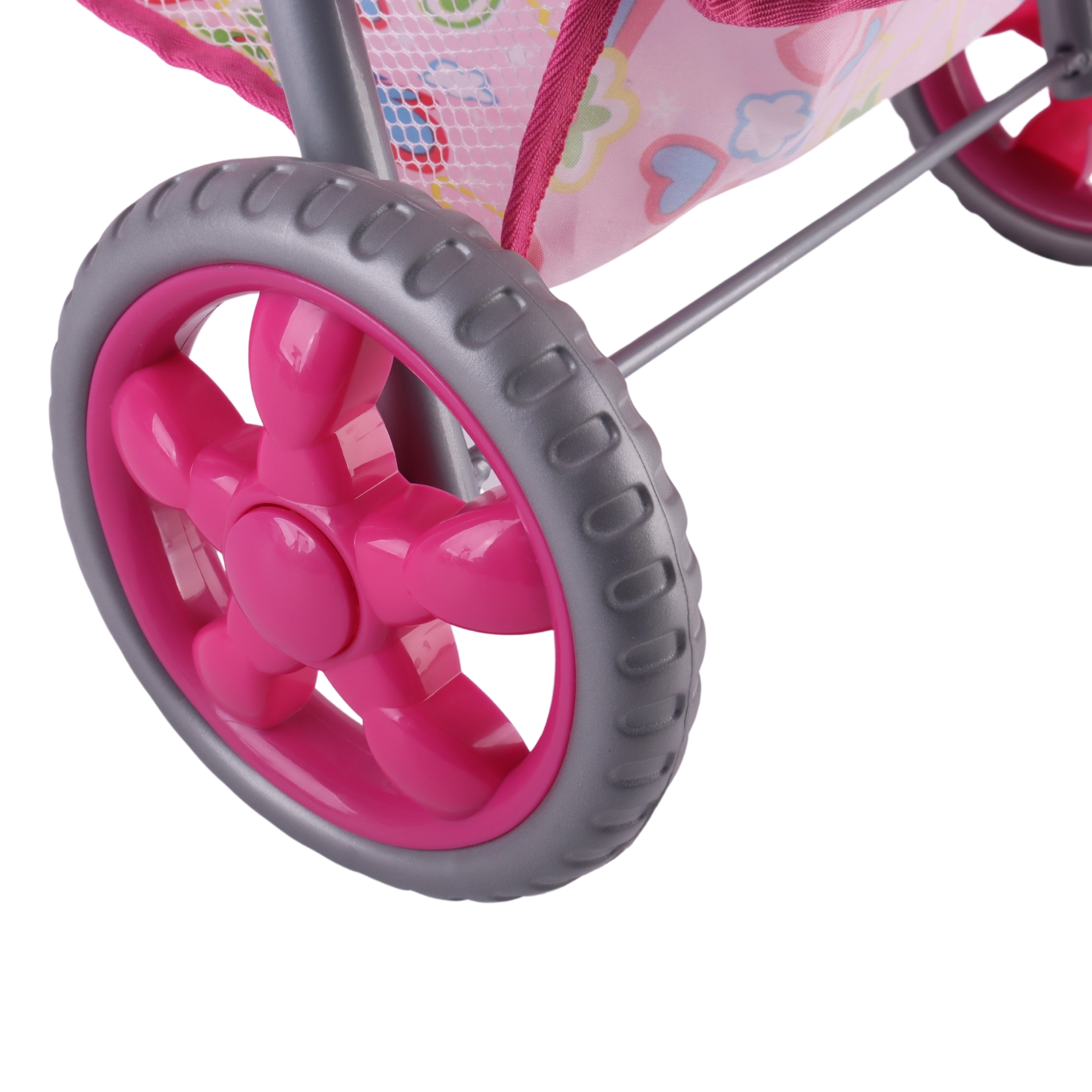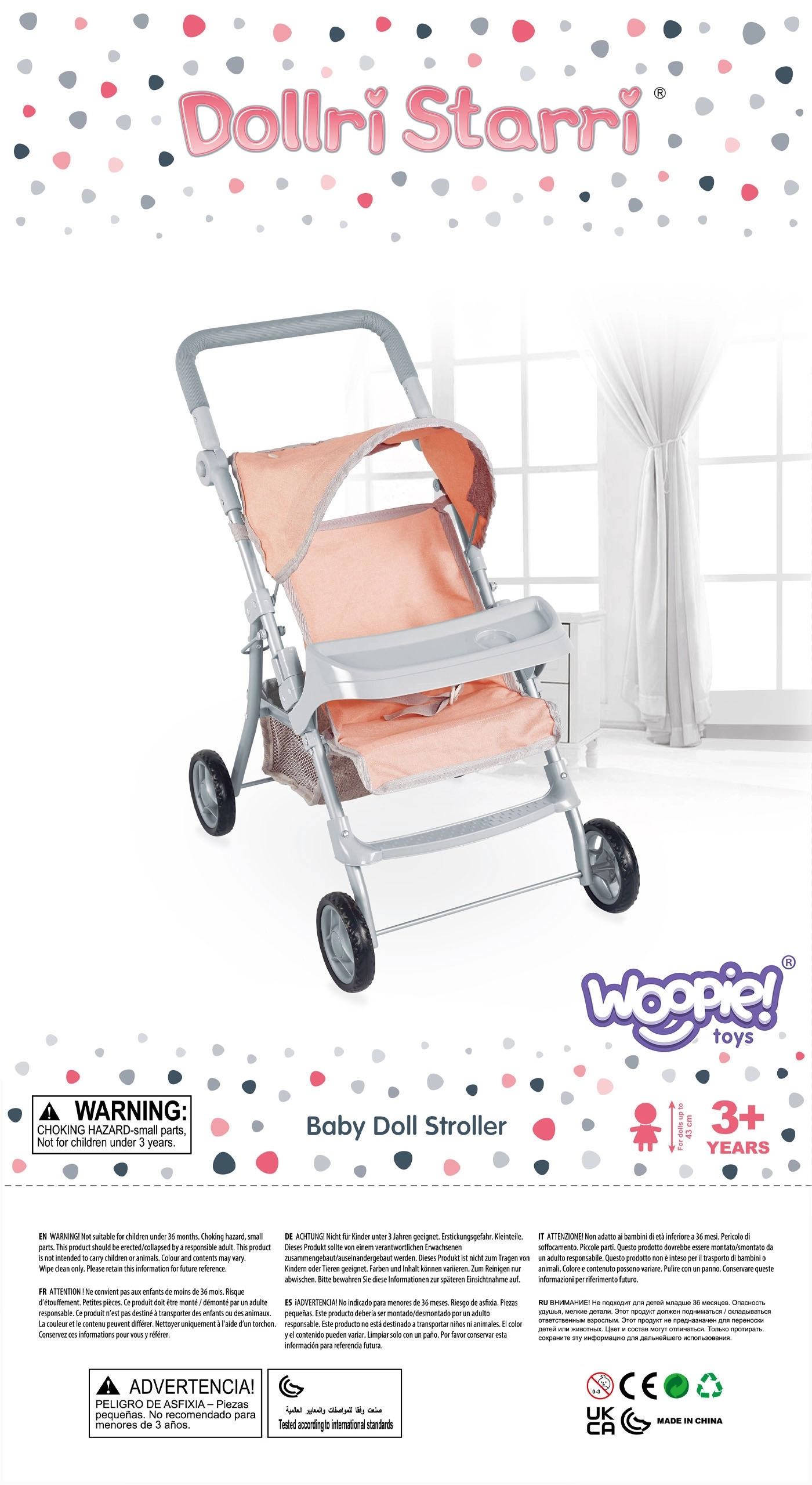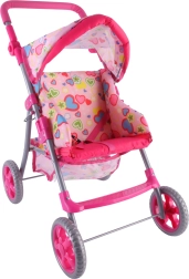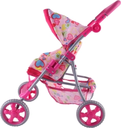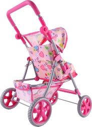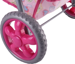 Vieglie un stabili Woopie leļļu ratiņi iepriecinās katru mazo māmiņu. Tiem ir regulējams rokturis, salokāma jumtiņa daļa, drošības jostas un praktiska groziņa vieta sīklietām. Pateicoties klusajiem putu riteņiem, tie ir ideāli gan mājās, gan pastaigās, un pēc spēles tos var viegli salocīt, lai ietaupītu vietu. Stilīgs dizains ar sirsniņām iepatiksies bērniem.