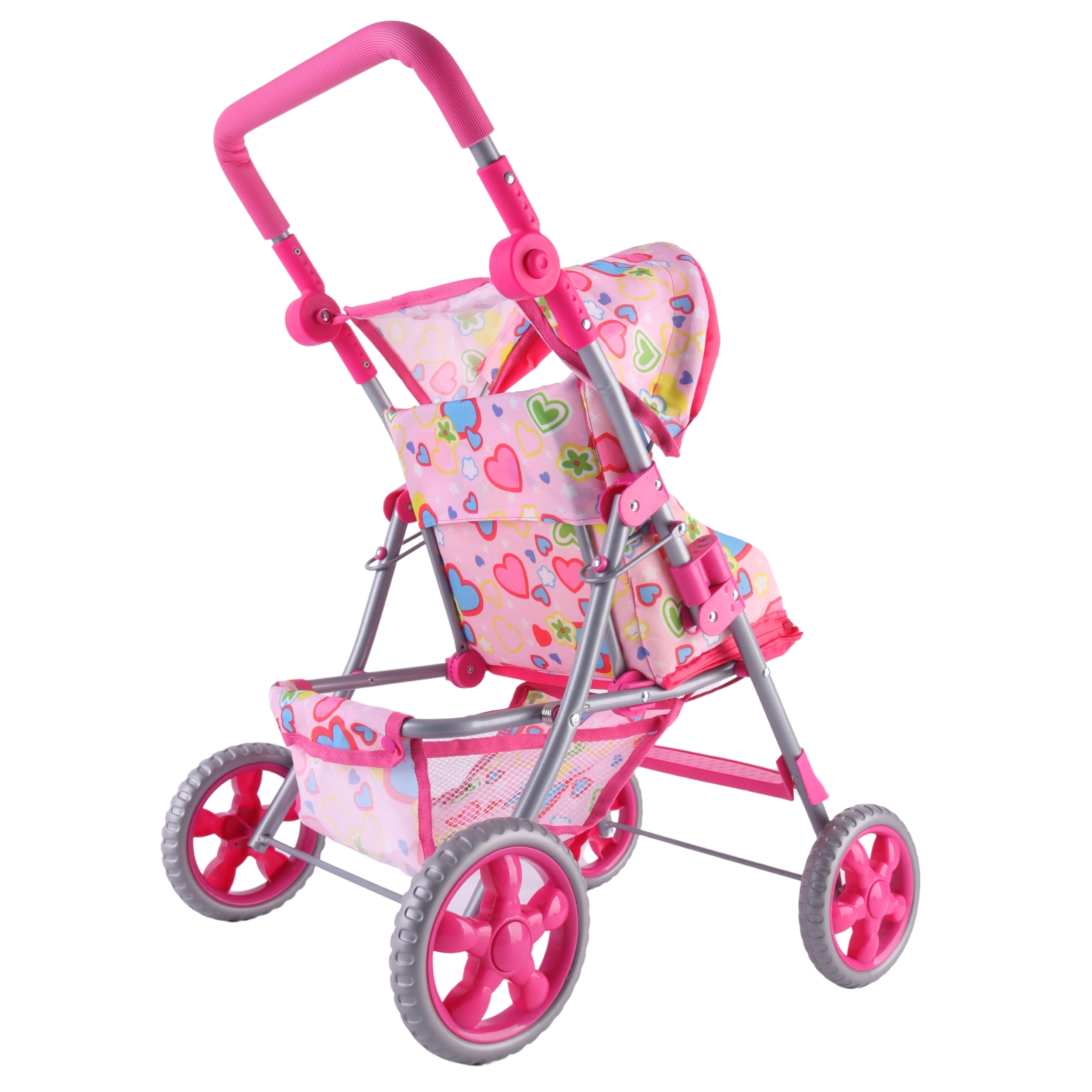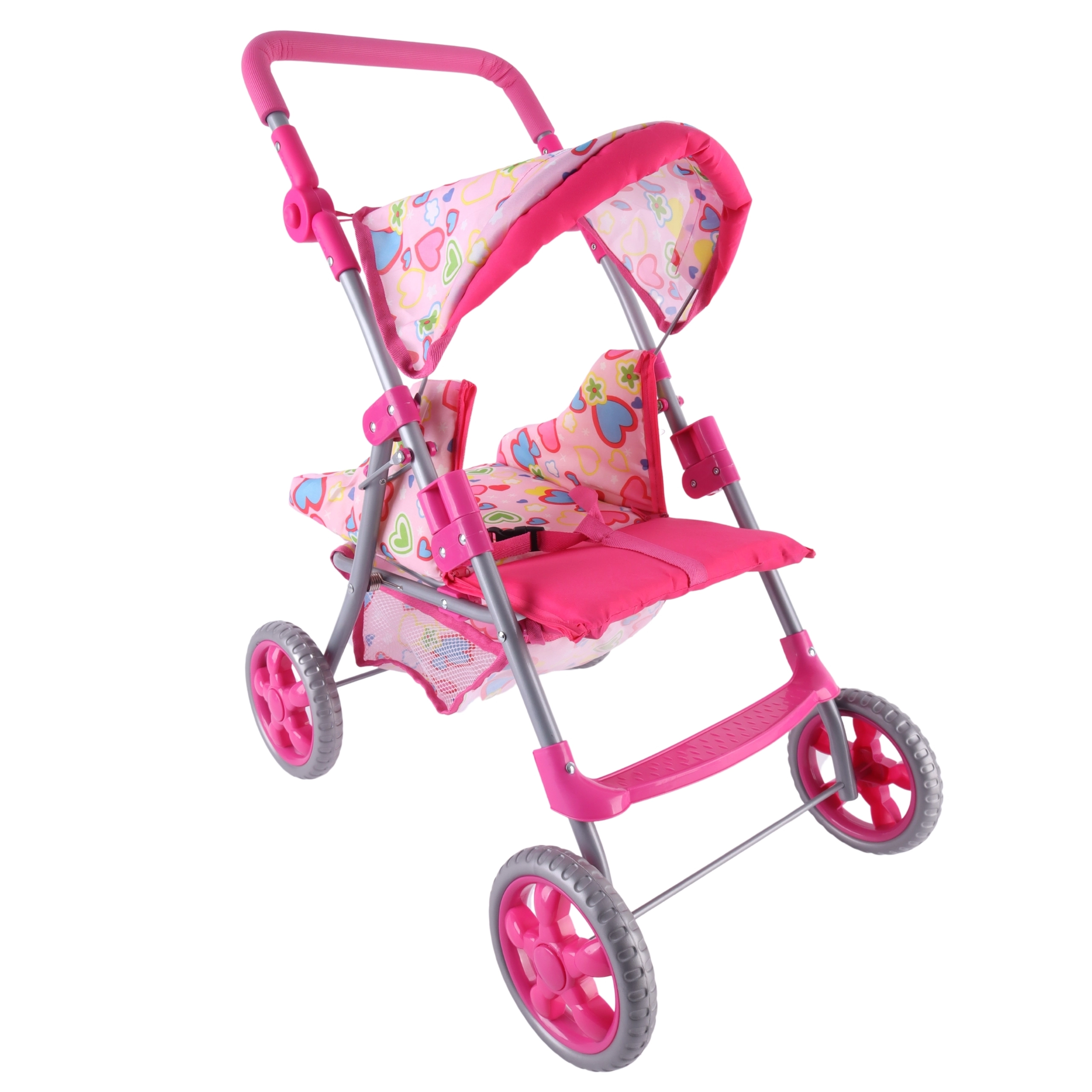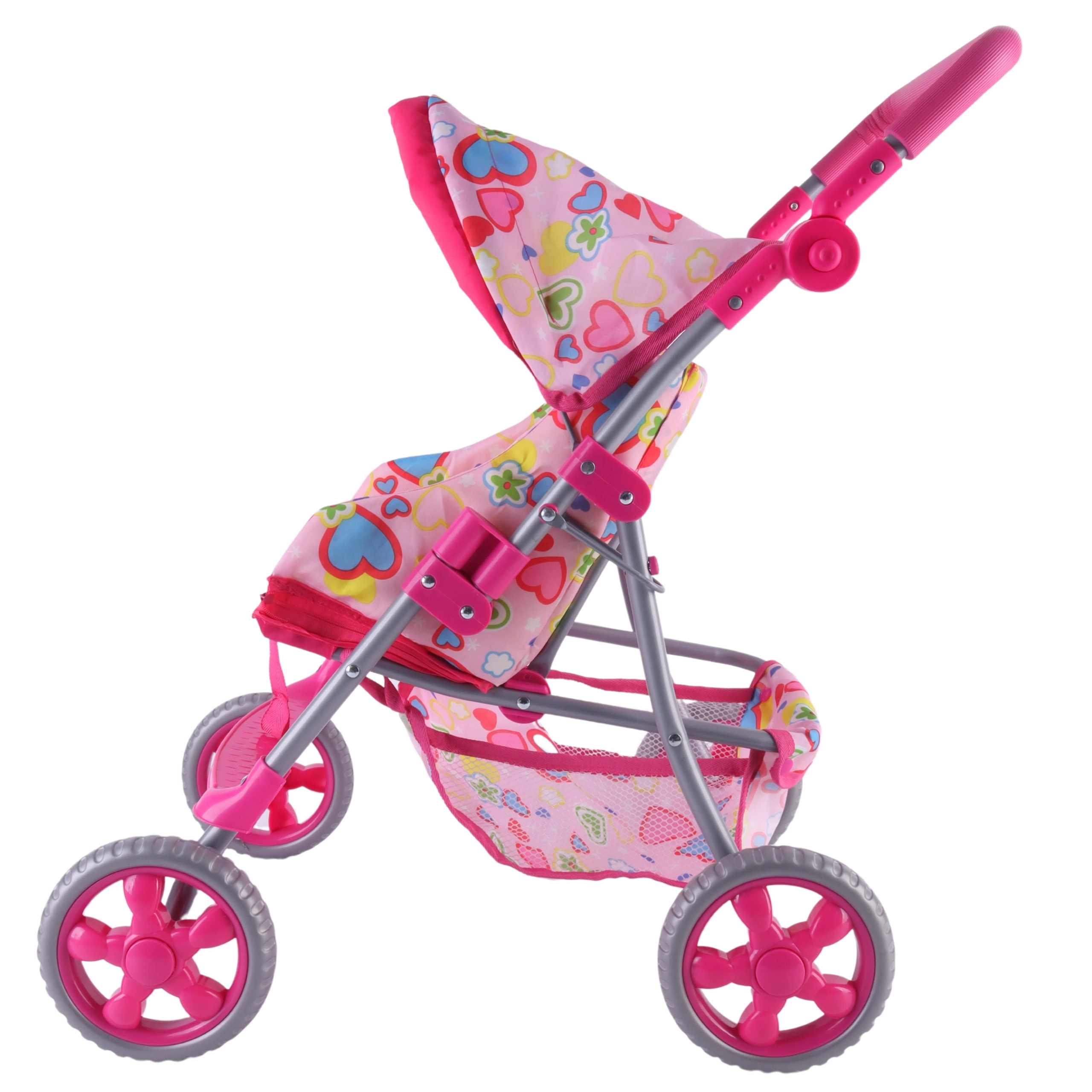 Vieglie un stabili Woopie leļļu ratiņi iepriecinās katru mazo māmiņu. Tiem ir regulējams rokturis, salokāma jumtiņa daļa, drošības jostas un praktiska groziņa vieta sīklietām. Pateicoties klusajiem putu riteņiem, tie ir ideāli gan mājās, gan pastaigās, un pēc spēles tos var viegli salocīt, lai ietaupītu vietu. Stilīgs dizains ar sirsniņām iepatiksies bērniem.