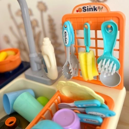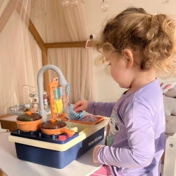 Ieprieciniet savus bērnus ar šo lielisko virtuves komplektu, kas ļaus piedzīvot pavārpriekus. Rotaļlieta izceļas ar reālistisku virtuves darbību simulāciju, ko papildina kustīgie elementi un funkcionējošs krāns. Vienkārši iepildiet ūdeni tvertnē un vērojiet, kā bērns ar prieku spēlējas.