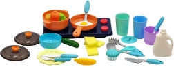 Bagātīgs piederumu komplekts, piemēram, katli, trauki un dārzeņi, palīdz attīstīt bērnu iztēli un radošumu.