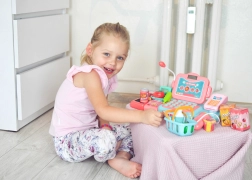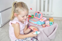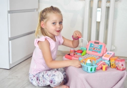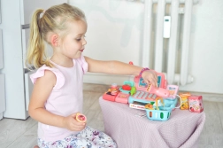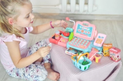 Pateicoties lasītājam un integrētajiem svariem, bērni viegli “noskenēs” preces un nosvērs augļus vai dārzeņus, iegūstot reālistisku pieredzi.