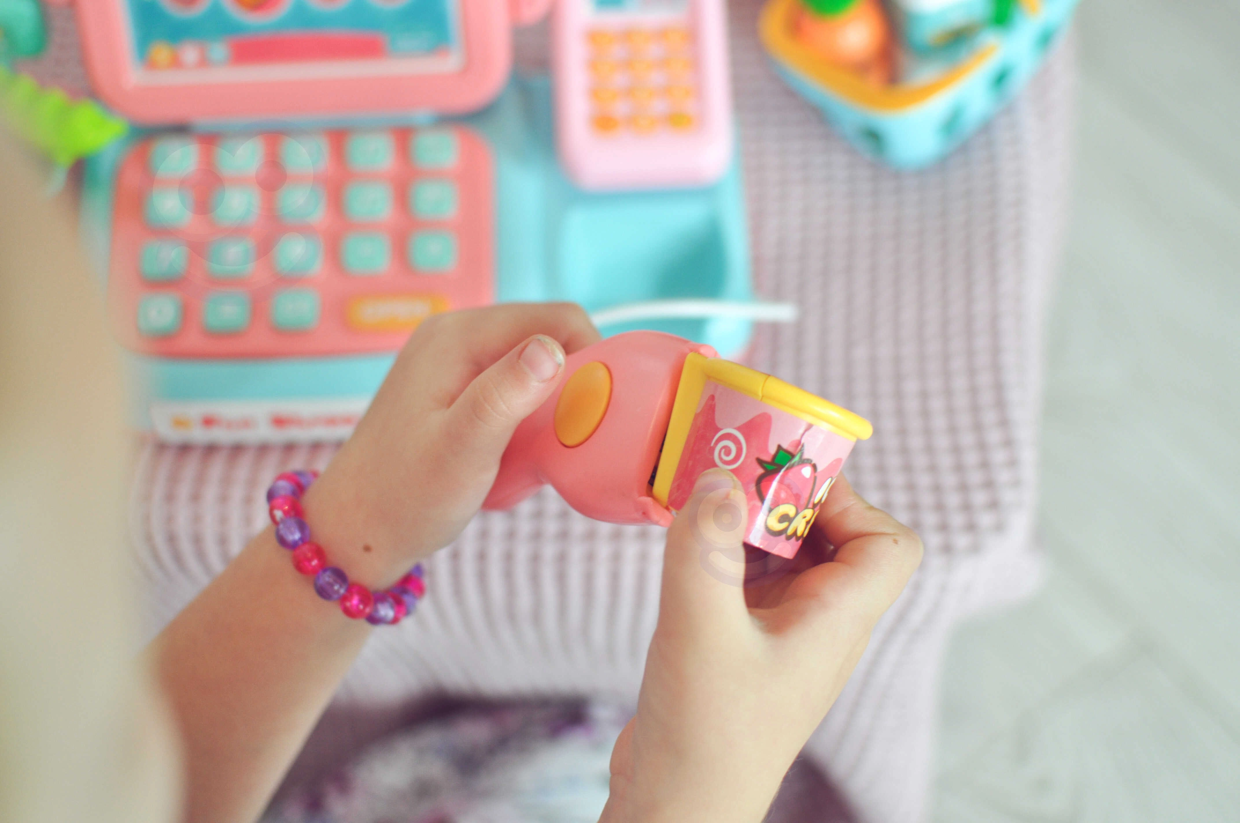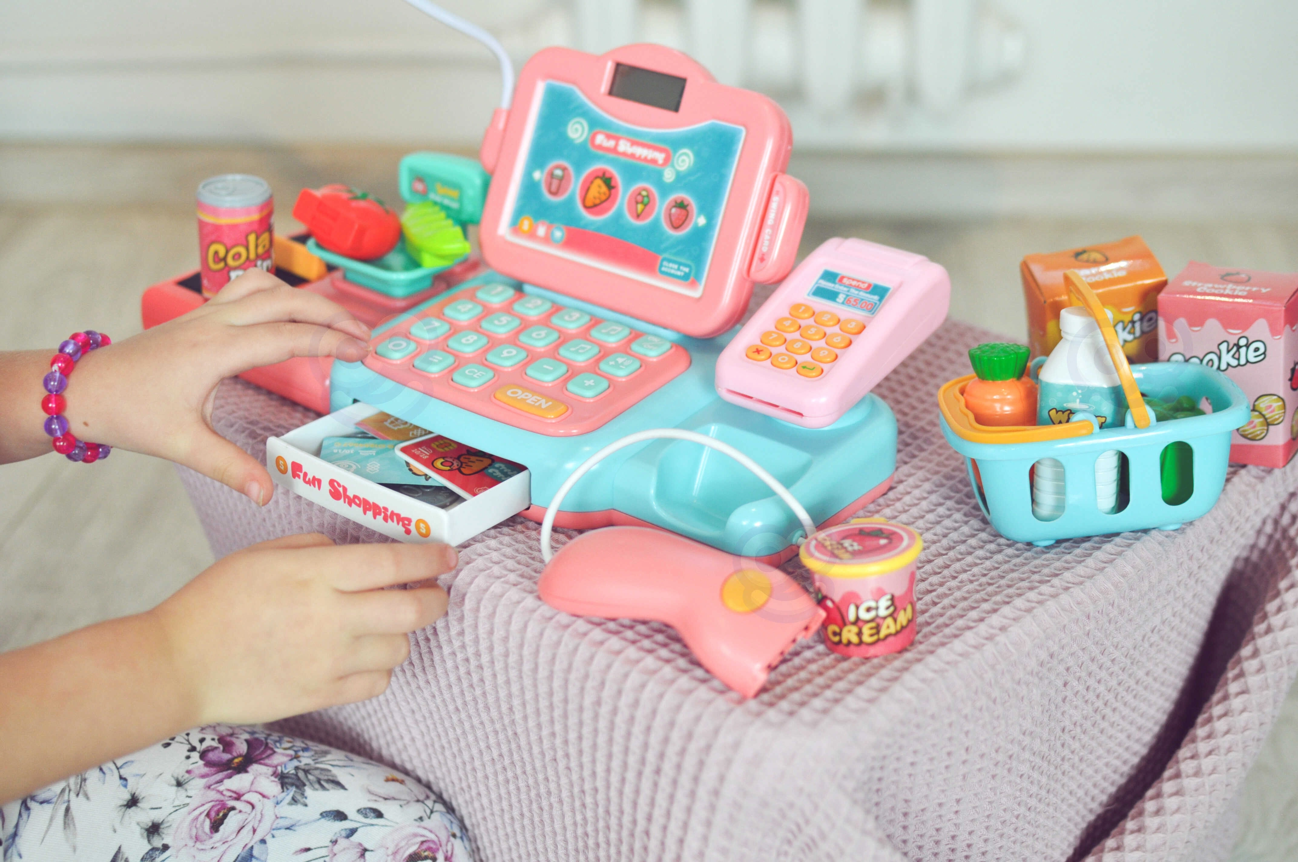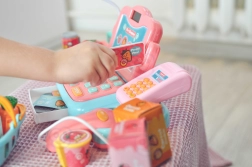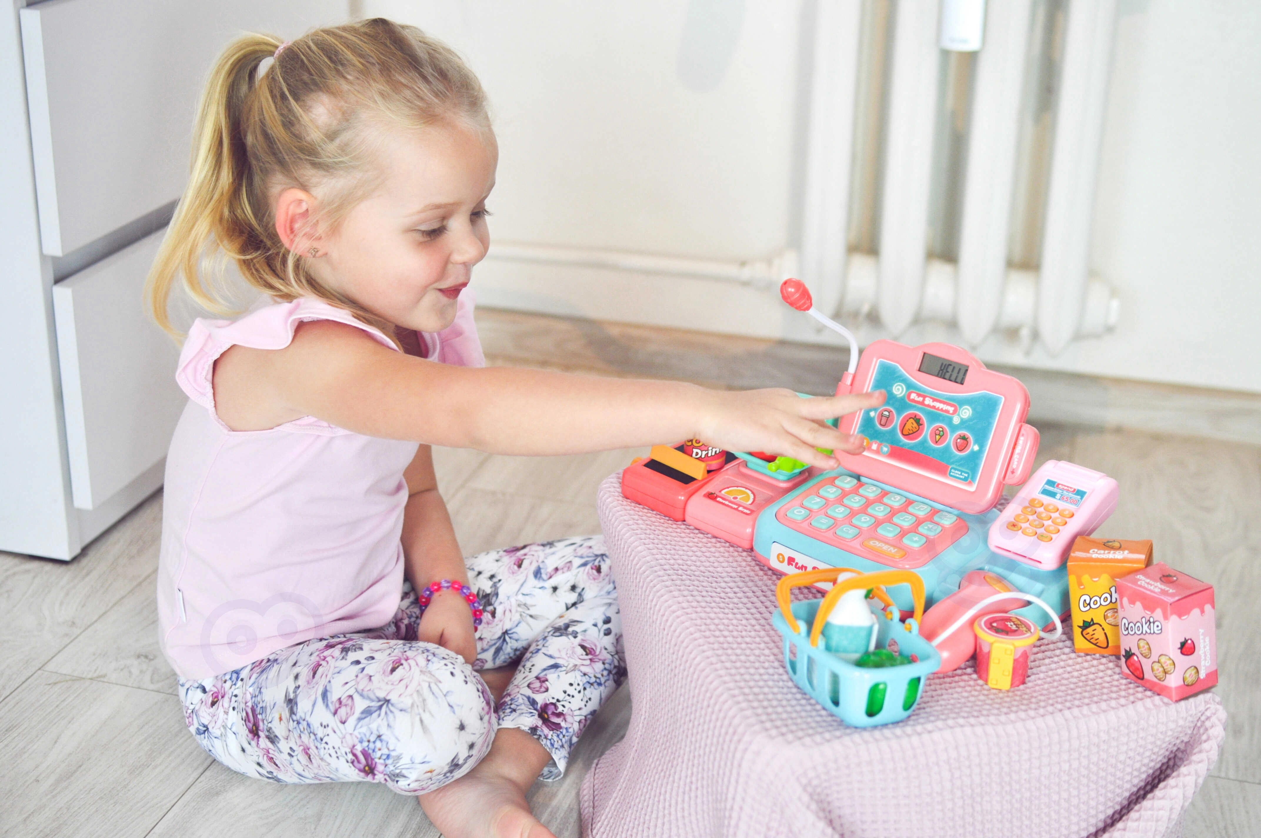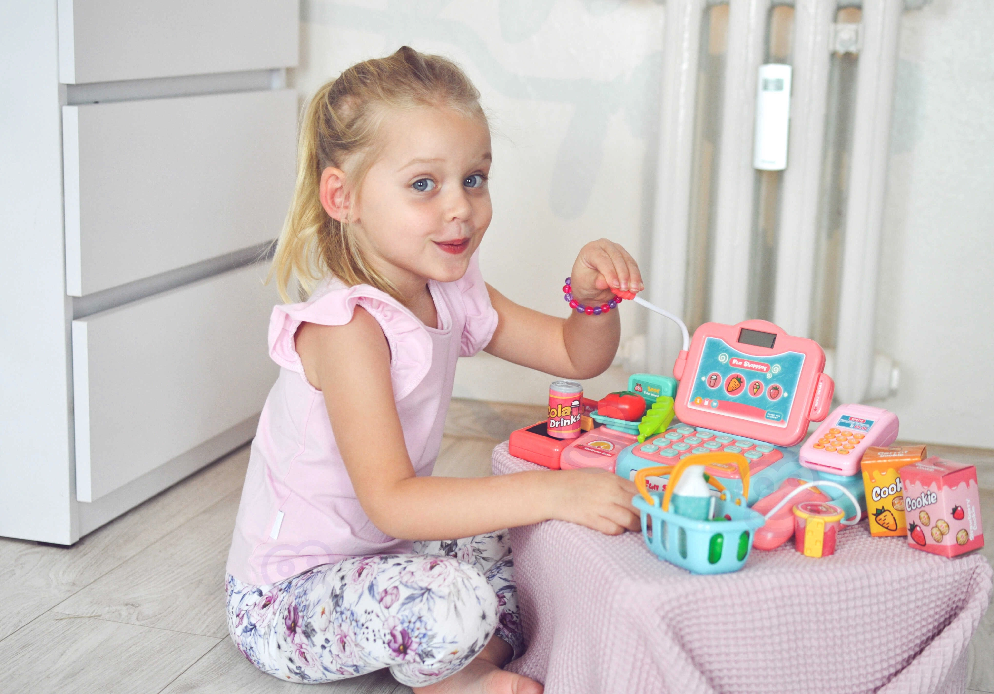 Veikala spēle veicina komunikāciju, sadarbību un finanšu pratības pamatus. Bērni var skenēt preces, “svert” augļus un dārzeņus, ievadīt cenas un izvēlēties maksājumu skaidrā naudā vai ar karti. Kvalitatīvs un drošs plastmasas izpildījums nodrošina ilgu un drošu izklaidi.