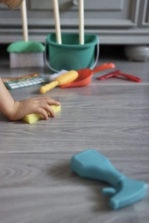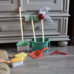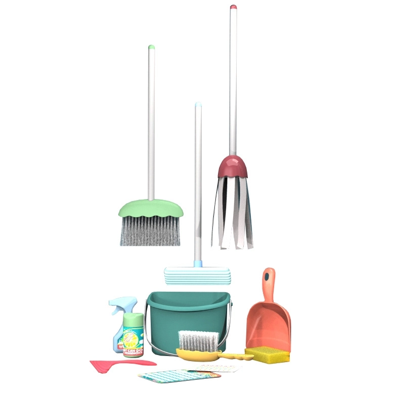 - Daļas ticami atdarina īstus uzkopšanas rīkus.