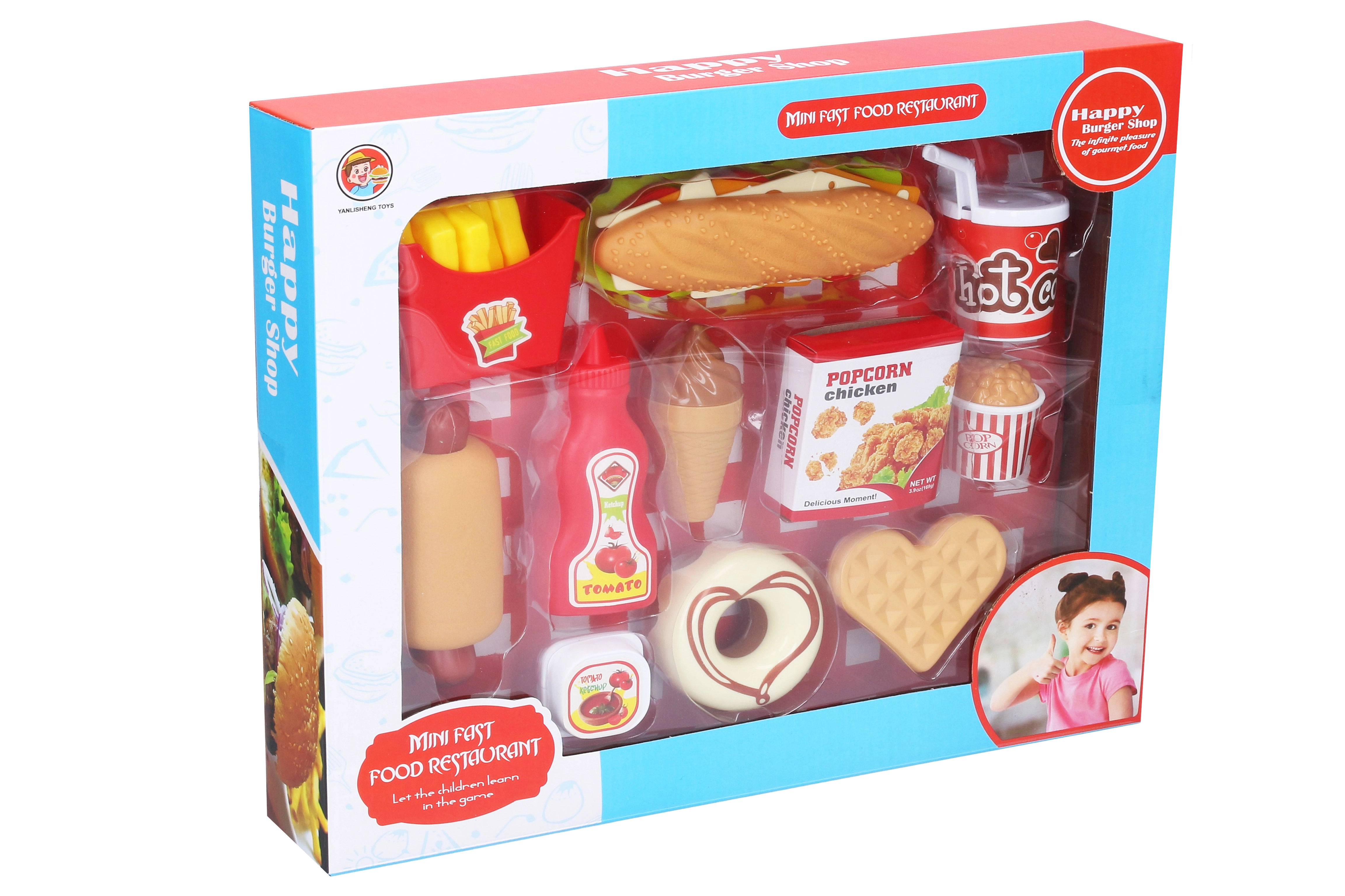 Izbaudiet daudzveidīgās garšas no ātro uzkodu komplekta, kurā ir viss nepieciešamais autentiskai fastfūda pieredzei: