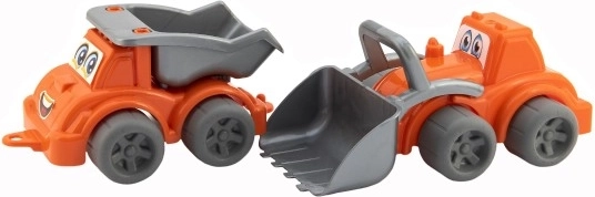 Aizraujošs divu plastmasas celtniecības transportlīdzekļu komplekts iepriecinās ikvienu mazo būvnieku. Tajā ietilpst iekrāvējs un automašīna ar kravas kasti, abi ar brīvgaitu, izgatavoti no izturīgas plastmasas. Ideāli piemērots kā dāvana bērniem no 12 mēnešu vecuma.