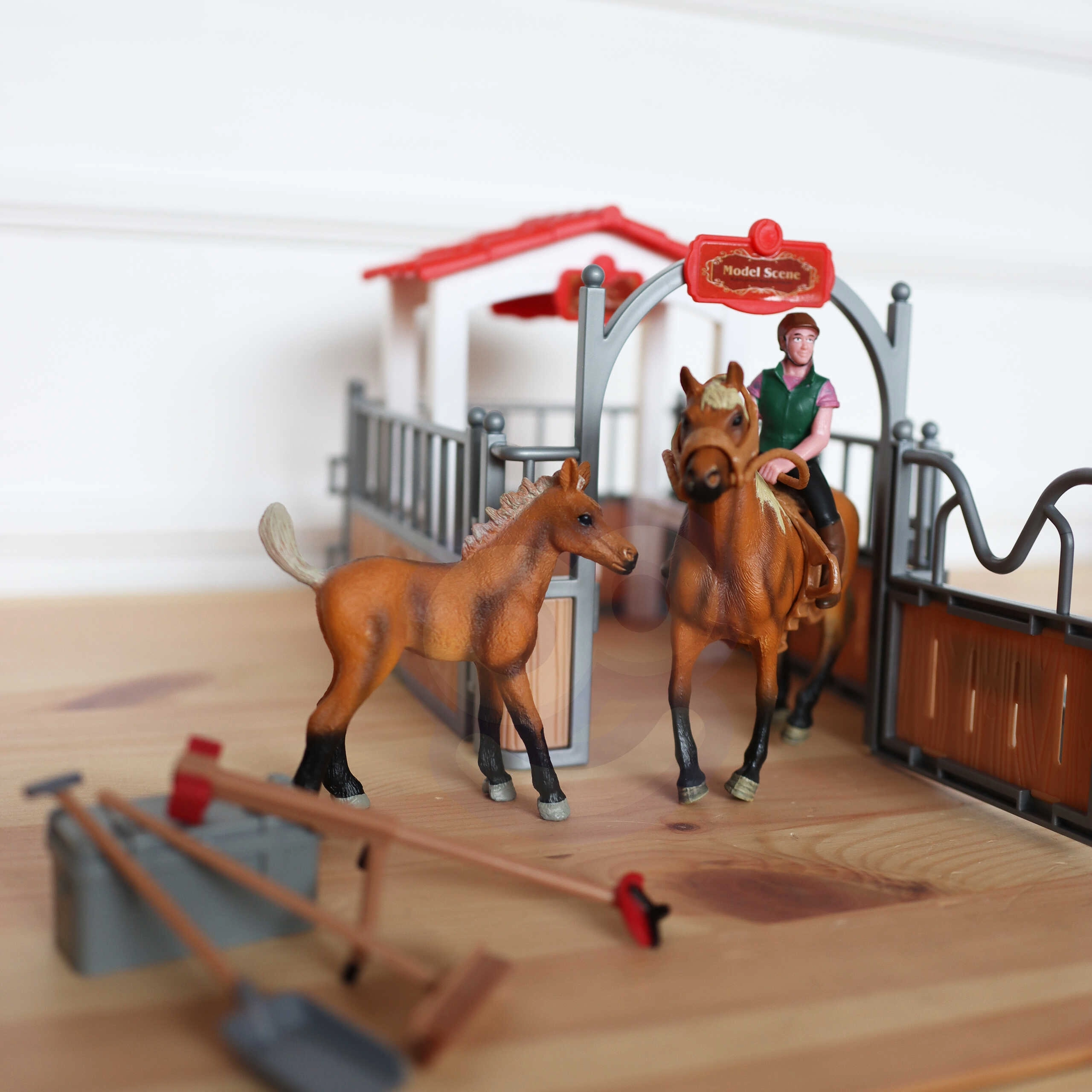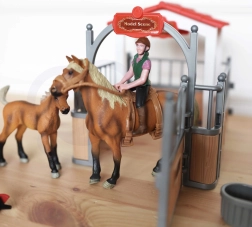 - 2 reālistiskas zirgu figūriņas un jātniece vēl daudzveidīgākiem spēles scenārijiem.