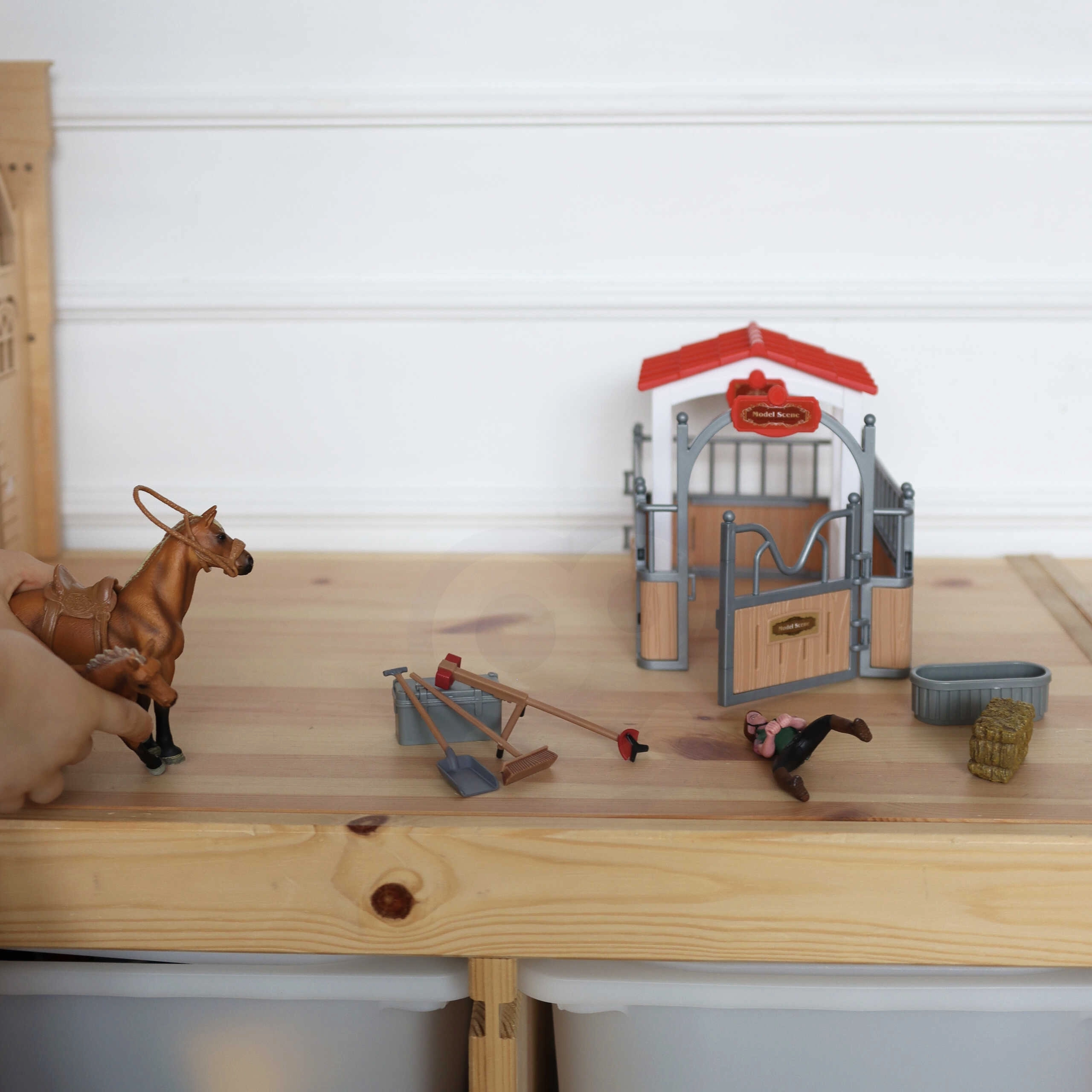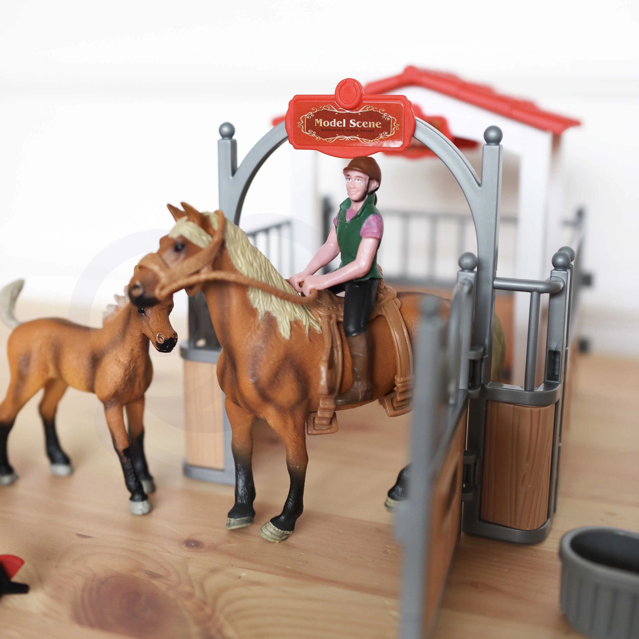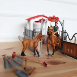 Komplekts mazajiem dzīvnieku mīļotājiem nodrošina reālistisku zirgu kopšanas pieredzi. Bērni var izmēģināt barošanu, tīrīšanu un seglošanu, pateicoties bagātīgajam piederumu klāstam. No 3 gadu vecuma lieliski attīsta sīko motoriku, fantāziju un ekoloģisko apziņu.