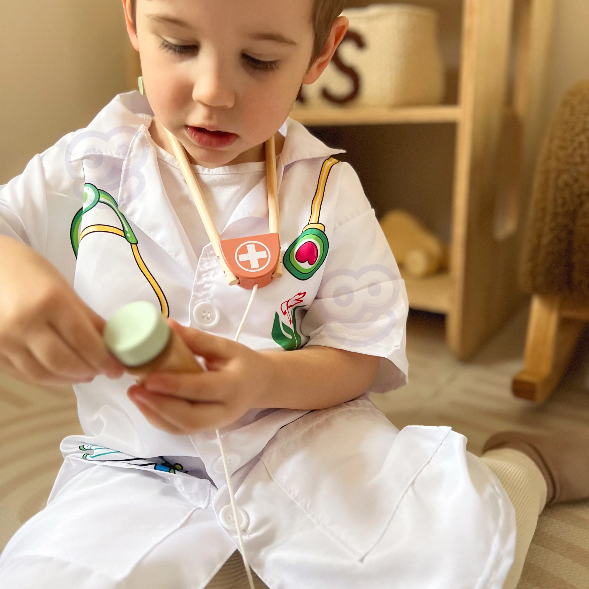 Ārsta kostīms bērniem no zīmola Woopie veicina viņu aizrautību palīdzēt citiem. Daudzi bērni sapņo kļūt par ārstiem, un ar šo kostīmu viņi tā arī var justies. Atcerieties, ka lomu spēles stimulē jūsu bērna iztēli un radošumu!