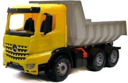 Šis bērnu pašizgāzējs Mercedes Giants Dump Truck piedāvā neticamu izklaidi bērniem. AROCS modelis ir trīsasu ar reālistisku dizainu, tostarp dzeltenu kabīni, melnu šasiju un sudraba kravas kasti.
