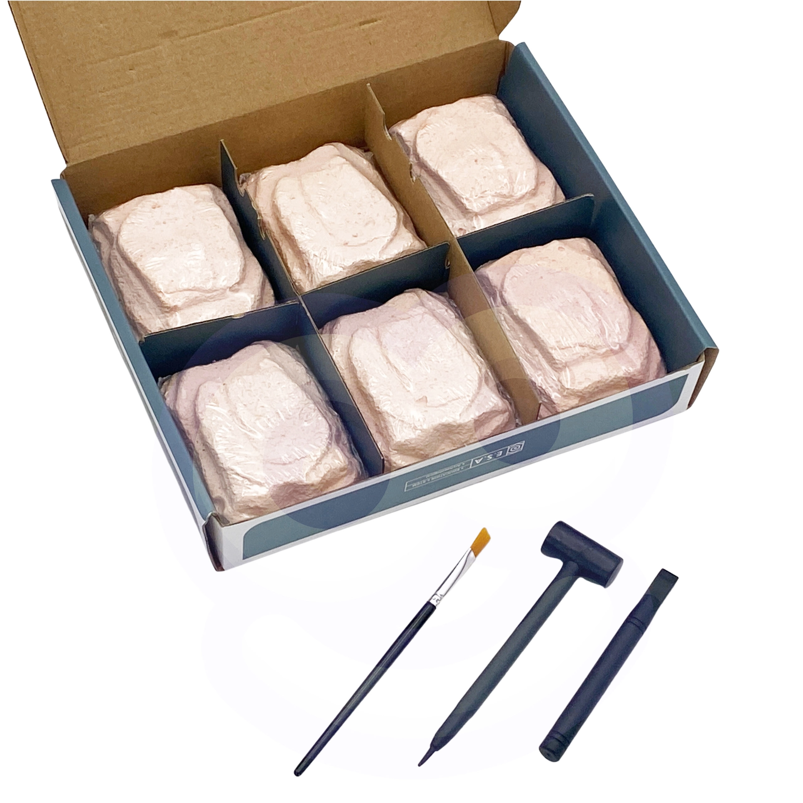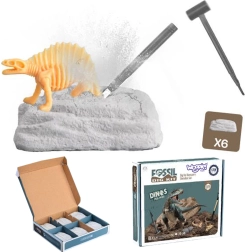 Ietver sešas dažādas dinozauru fosilijas izrakšanai, nodrošinot daudz stundu jautras nodarbes.