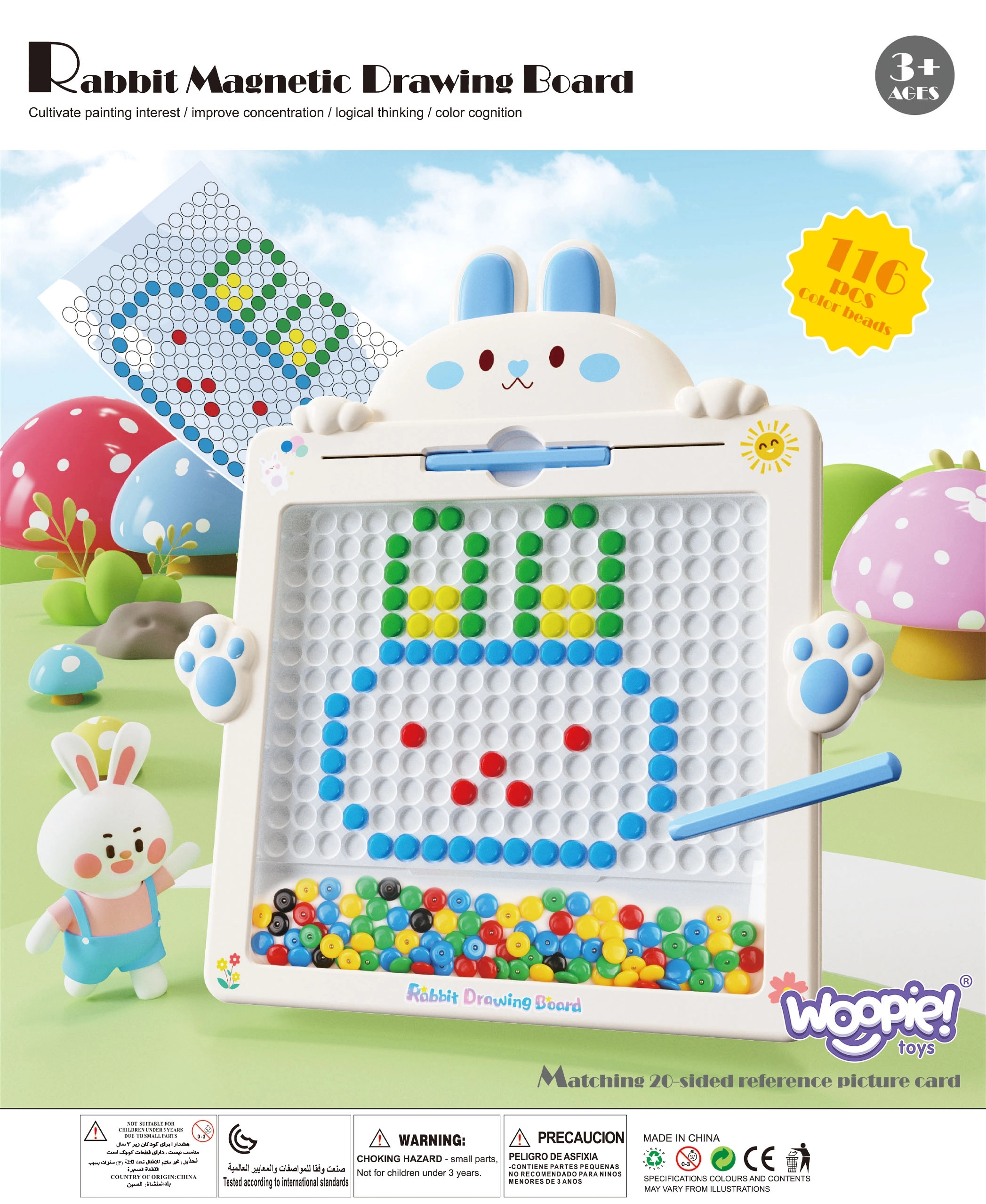 Ar WOOPIE magnētisko zīmēšanas tāfeli MagPad jūsu bērns ienirs radošuma pasaulē, kur vienīgais ierobežojums ir viņa paša fantāzija. Šis inovatīvais rīks ir aprīkots ar magnētisko pildspalvu, ar kuru bērni var veidot savus rakstus un figūras, izmantojot 50 magnētiskās pogas un 20 paraugus uz desmit abpusējām kartītēm.