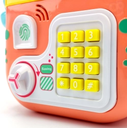 Šis košais krabis ir vairāk nekā tikai krājkase – tas ir interaktīvs seifs, krājkase un bērnu mugursoma vienā. Bērni tajā var glabāt monētas, banknotes un mazus dārgumus, ievadīt savu paroli un izbaudīt reālistiskus elementus, piemēram, pogu tastatūru, imitētu pirkstu nospiedumu lasītāju un pagriežamu rokturi atvēršanai.