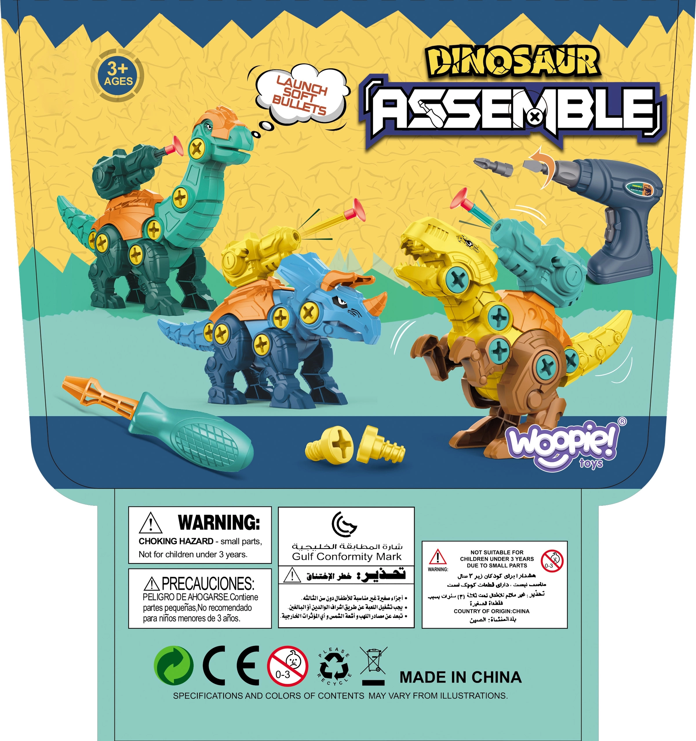 Atklājiet radošo konstruēšanas pasauli ar WOOPIE dinozauriem salikšanai. Komplektā atradīsiet 3 krāsainus dinozaurus, ko bērni var salikt paši ar urbi un skrūvgriezi ar maināmiem uzgaļiem. Pēc salikšanas dinozauriem ir kustīga galva, aste un ekstremitātes vēl aizraujošākai spēlei. Lieliska rotaļlieta smalkās motorikas, pacietības un radošuma attīstīšanai, glabājas ērtā pārnēsājamā koferītī.