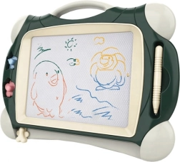 WOOPIE magnētiskā tāfele ir ideāls palīgs mazajiem māksliniekiem no 3 gadu vecuma. Tā ļauj radīt bezgalīgu zīmējumu daudzumu bez papīra un nekārtības – pietiek pārbraukt ar slīdni, un virsma atkal ir tīra. Pateicoties vieglajai konstrukcijai un ērtajam satvērienam, bērns to viegli paņems līdzi jebkur – ceļojumos, atvaļinājumā vai pie ārsta.