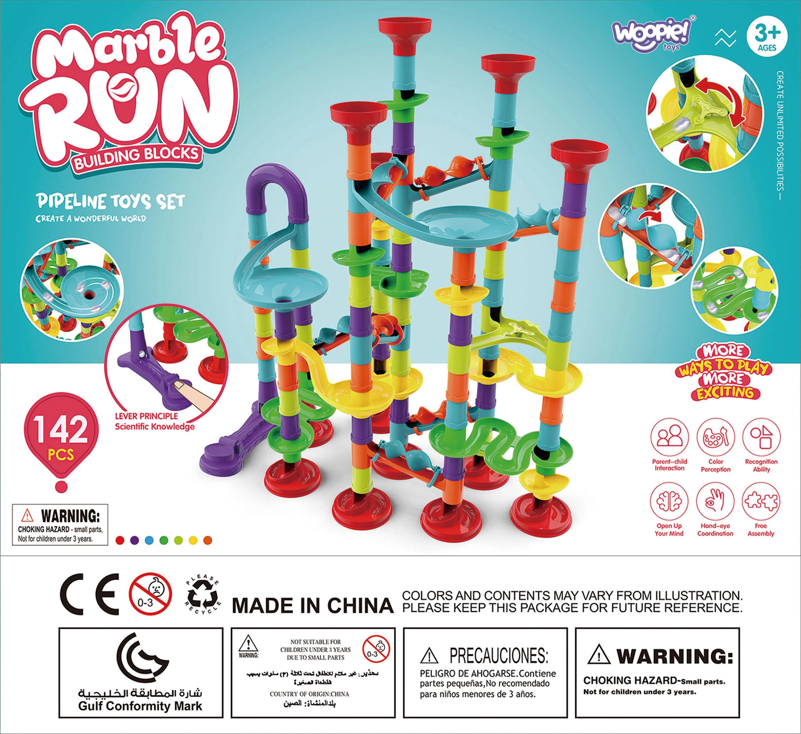Komplektā ir bumbiņas un praktiska palaišanas ierīce, ar kuru var paātrināt startu un vērot vienmērīgu kustību. Šī bumbiņu trase attīsta koordinācijas prasmes, loģisko domāšanu un pacietību, vienlaikus sniedzot daudz prieka, eksperimentējot ar dažādām trasēm.