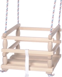 Šīs koka šūpoles ir īpaši paredzētas pašiem mazākajiem bērniem, kuri jau prot patstāvīgi sēdēt. Pateicoties robustajai konstrukcijai un drošības barjerai, tās nodrošina drošu un ērtu šūpošanos. Šūpoles var izmantot gan mājās, gan ārpus telpām.