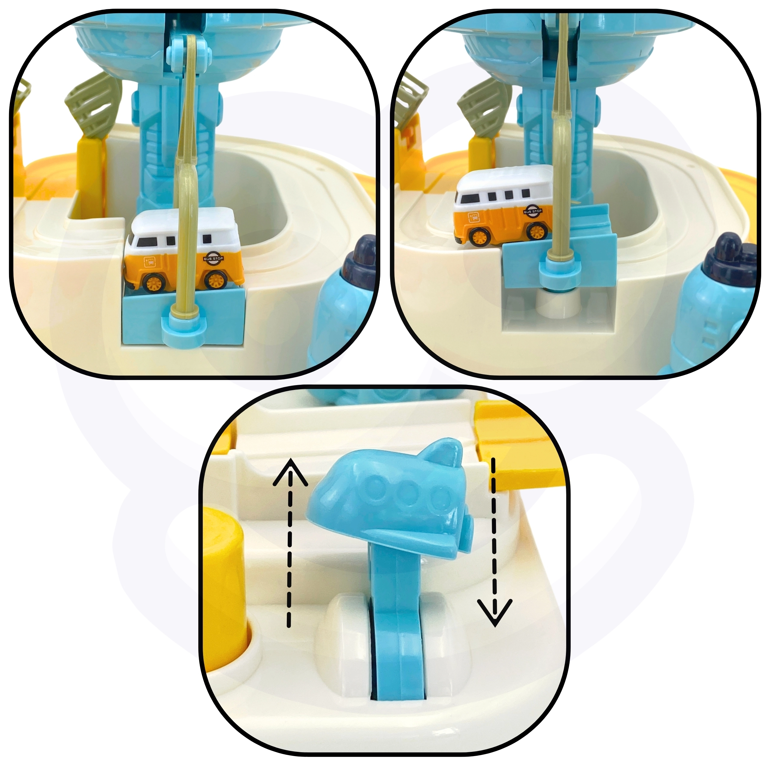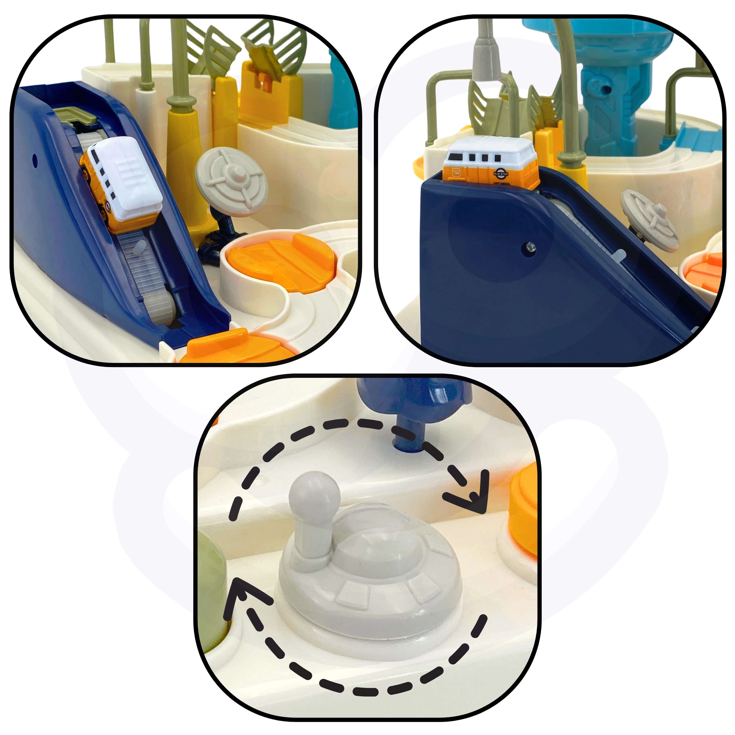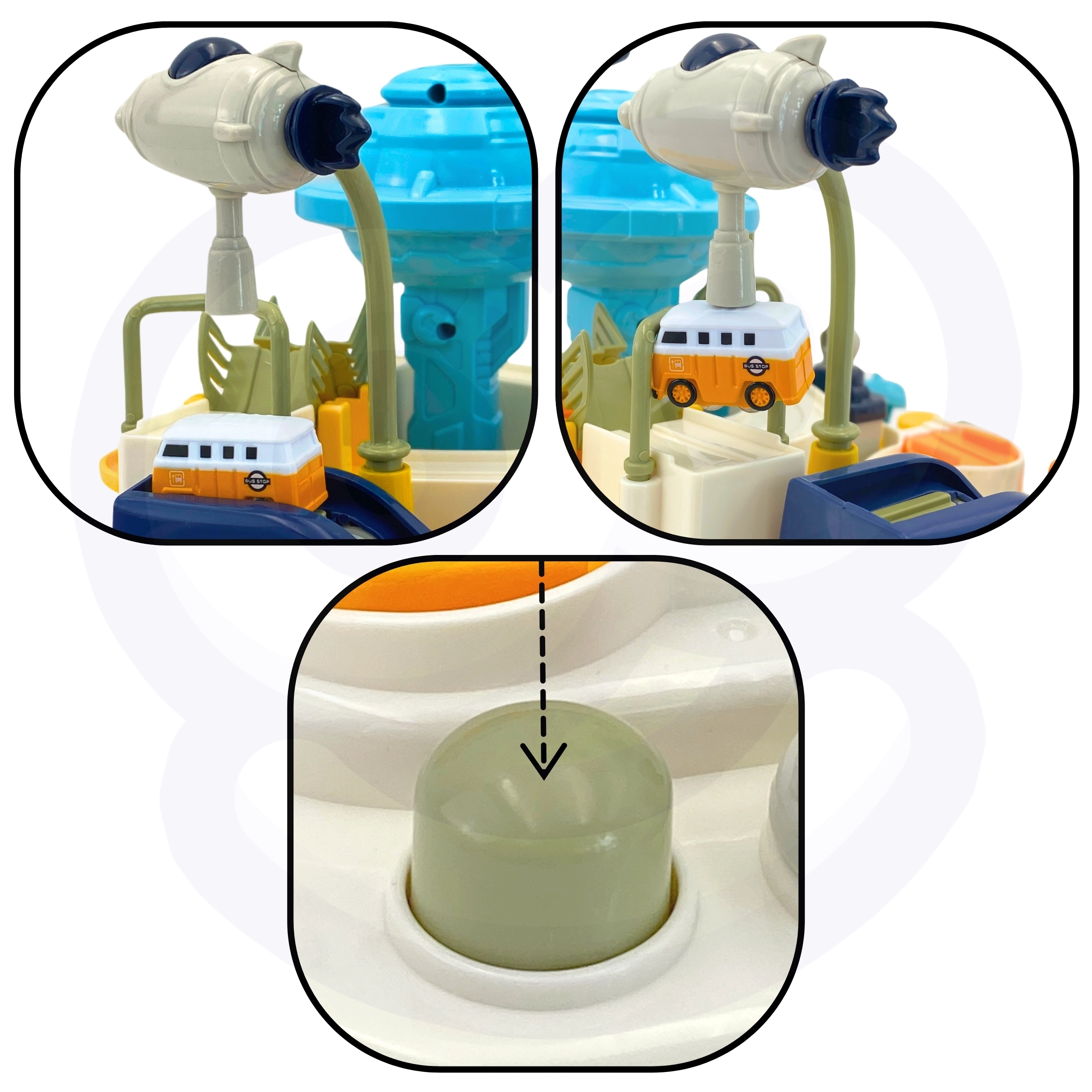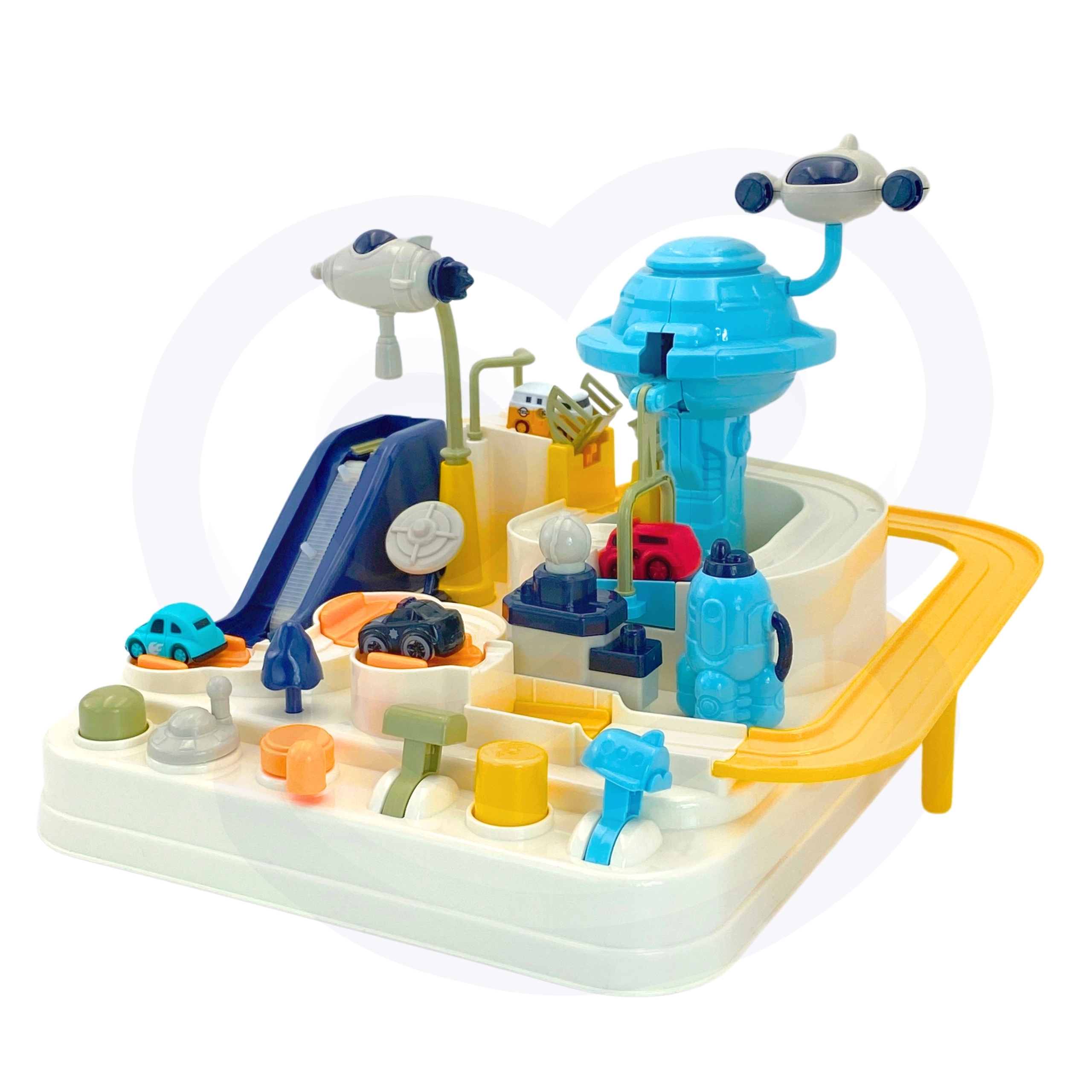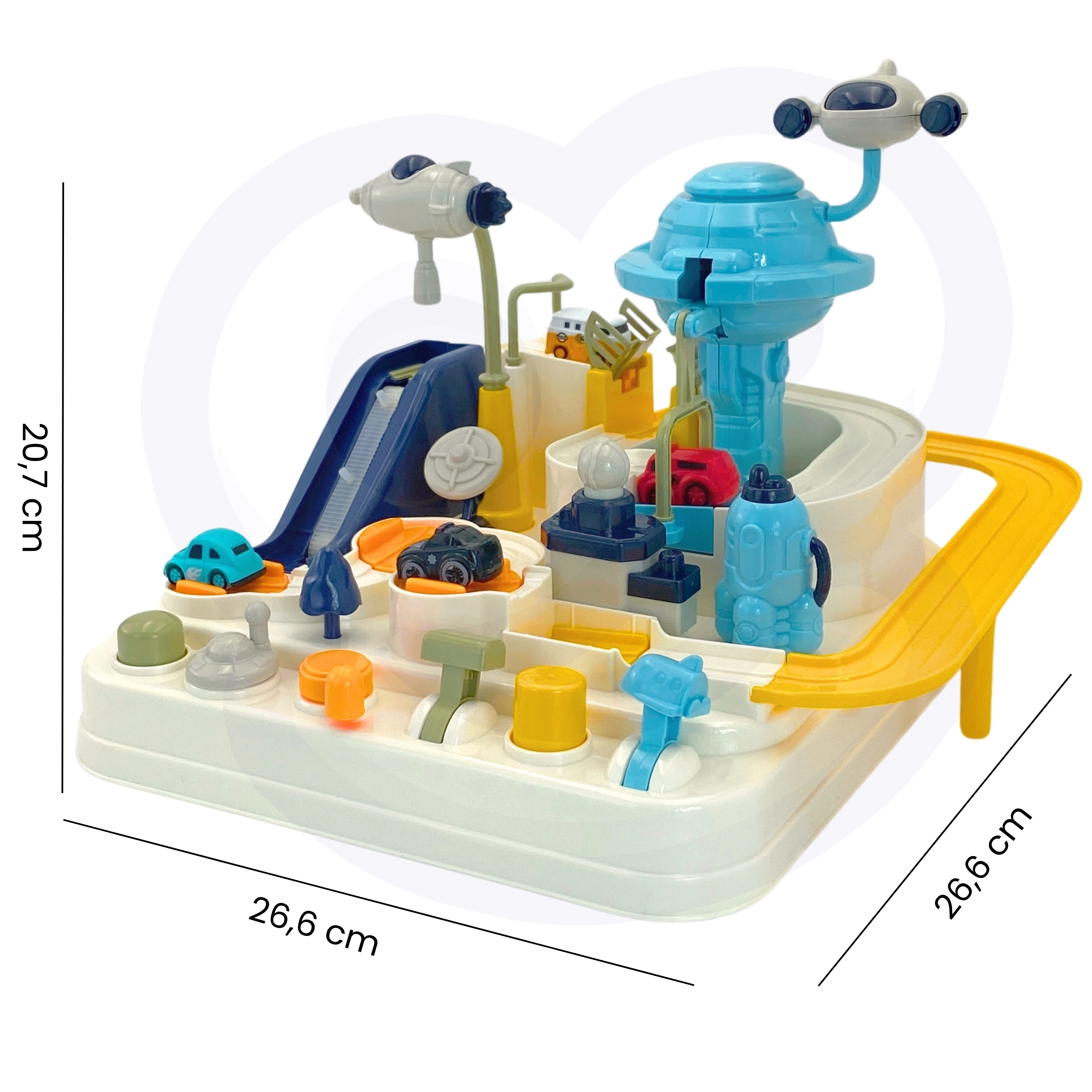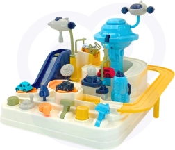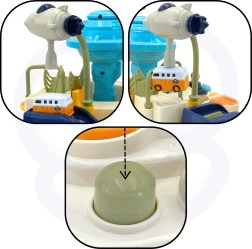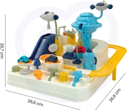 Interaktīvā trase kosmosa bāzes stilā pārvērš katru dienu aizraujošā misijā. Bērni manuāli iedarbina mehānismus, pārslēdz pārmijas un ar palaišanas ierīci nosūta transportlīdzekļus orbitā. Pateicoties izturīgajai konstrukcijai un drošajām malām, rotaļlieta ir ideāli piemērota ikdienas spēlēm un prasmju attīstīšanai.