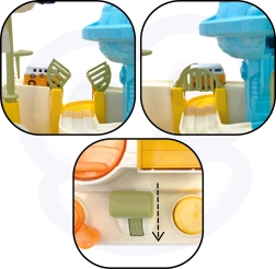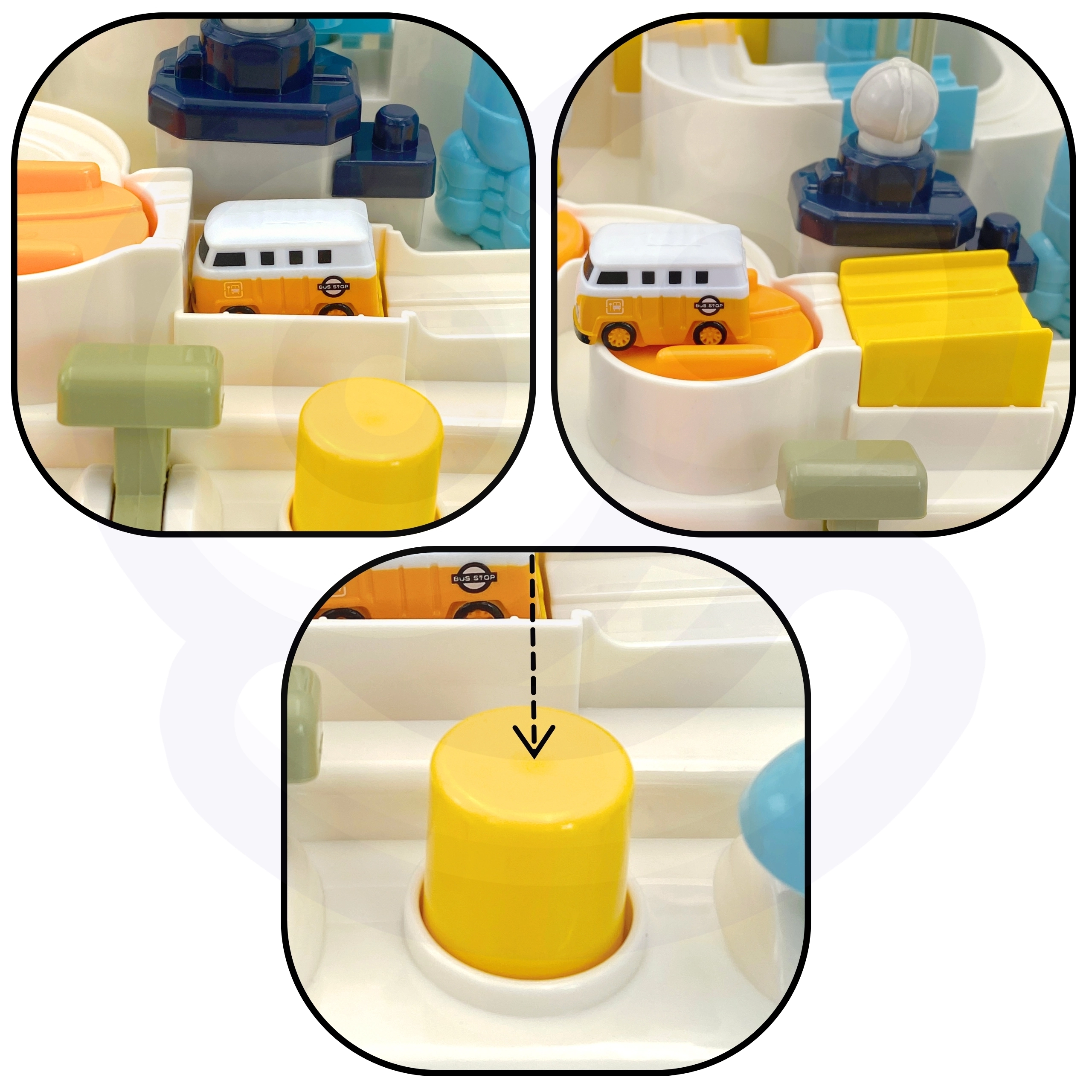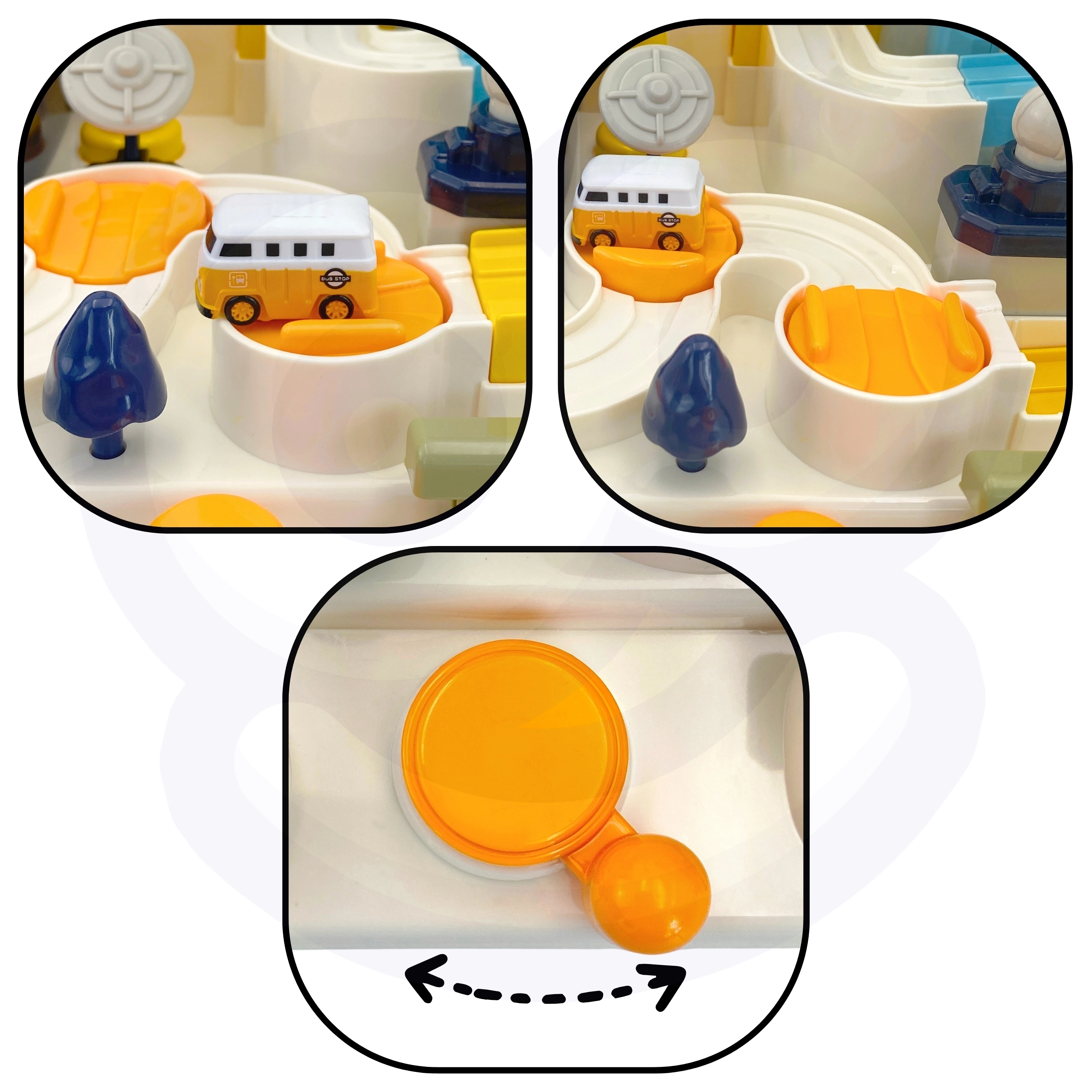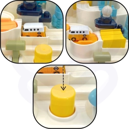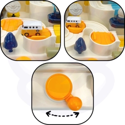 Sviras, pogas un kloķi iedarbina visu trasi. Bērns attīsta sīko motoriku, koordināciju un koncentrēšanos tikai ar manuālu vadību.