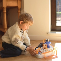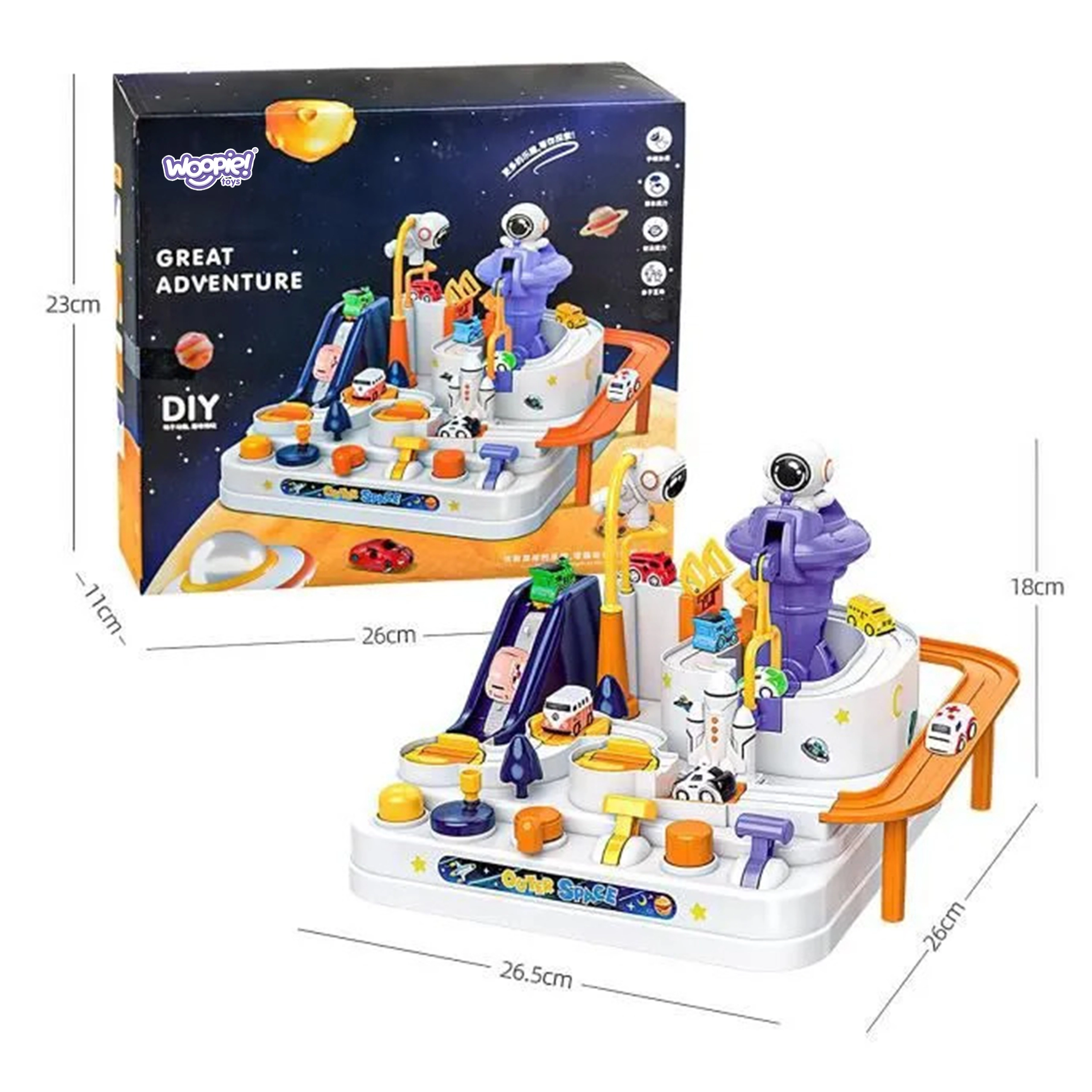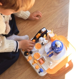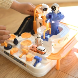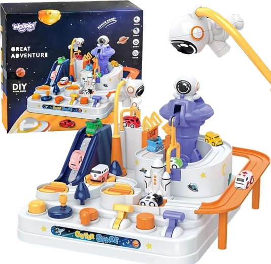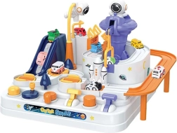 Atklājiet aizraujošu interaktīvu kosmosa trasi ar šķēršļiem, kur bērni vada pogas un sviras, darbinā liftus, pārceļ tiltus un ar magnētiskās raķetes palīdzību pārvieto mašīnītes. Bez baterijām, pilna ar kustīgām detaļām, veicina smalko motoriku, loģisko domāšanu un iztēli. Iekļautas 3 mašīnītes solo spēlei un sacensībām.
