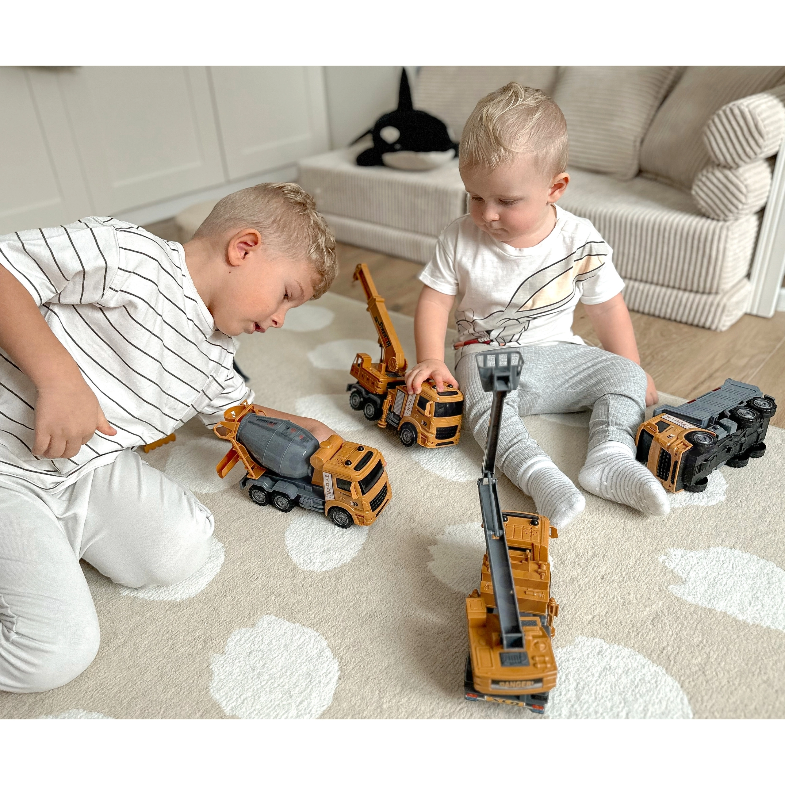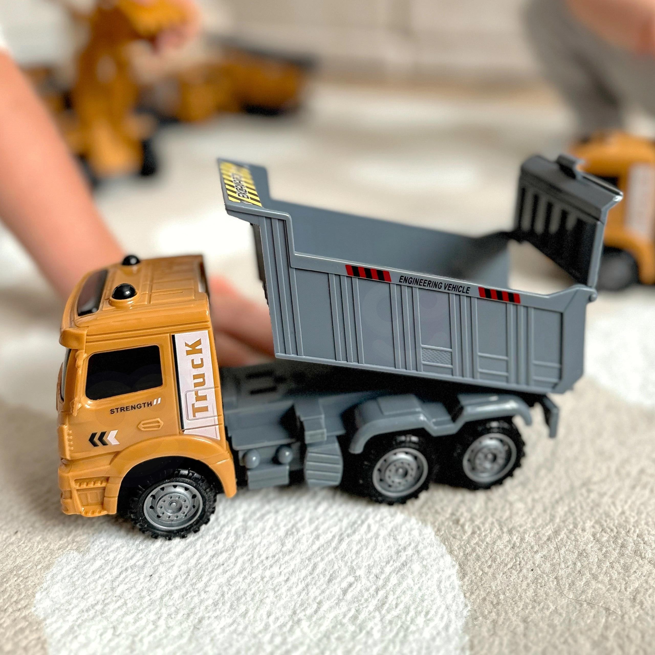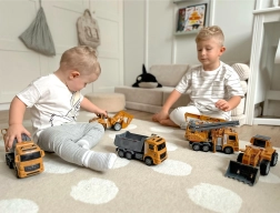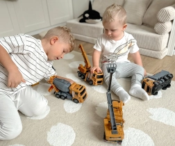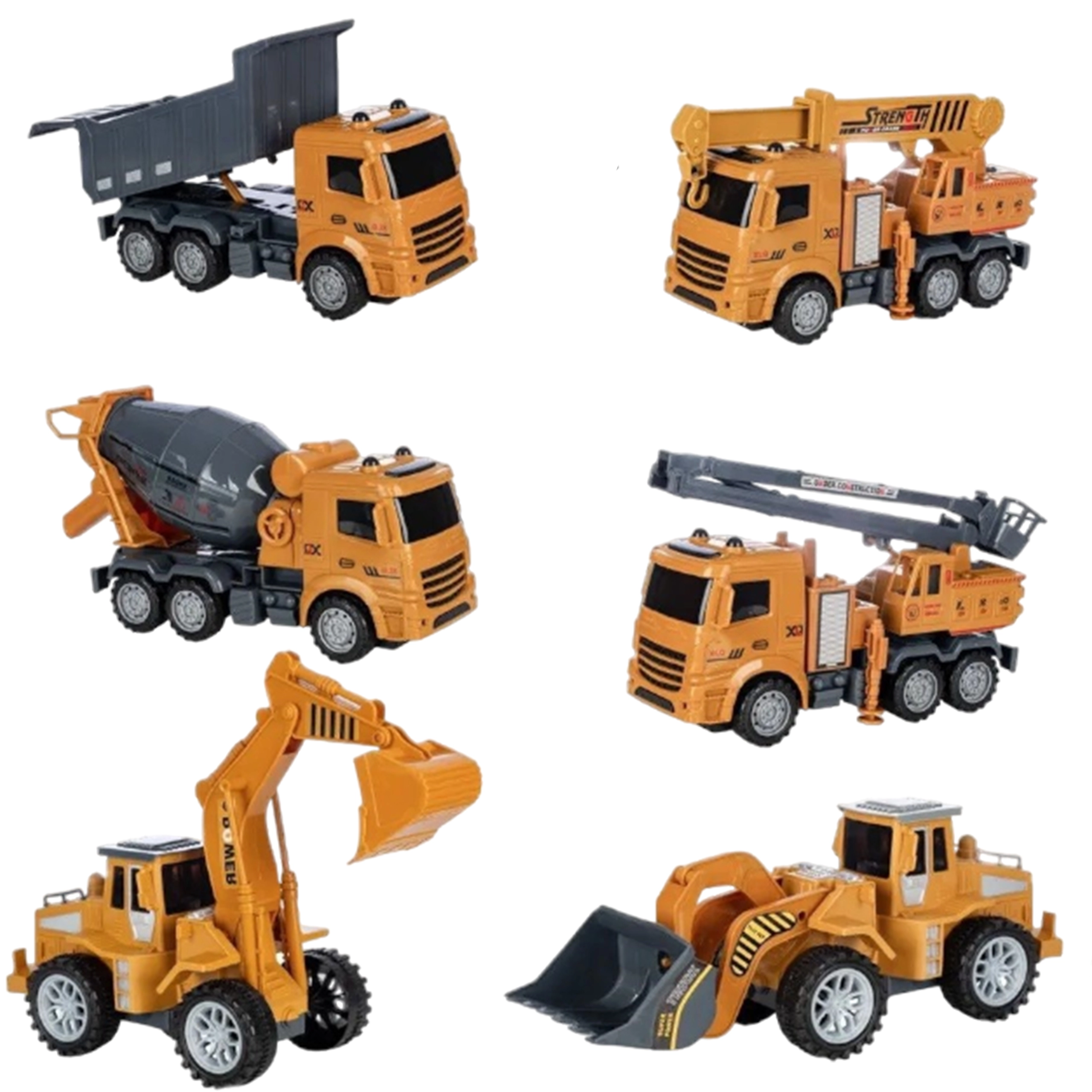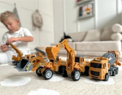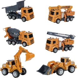 Ar šo komplektu bērni var iepazīt dažādas būvniecības aktivitātes un attīstīt iztēli. Tas ietver sešus lielus transportlīdzekļus, katru ar kustīgām daļām un reālistiskām detaļām, kas atdarina īstus būvniecības mehānismus.