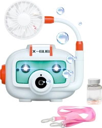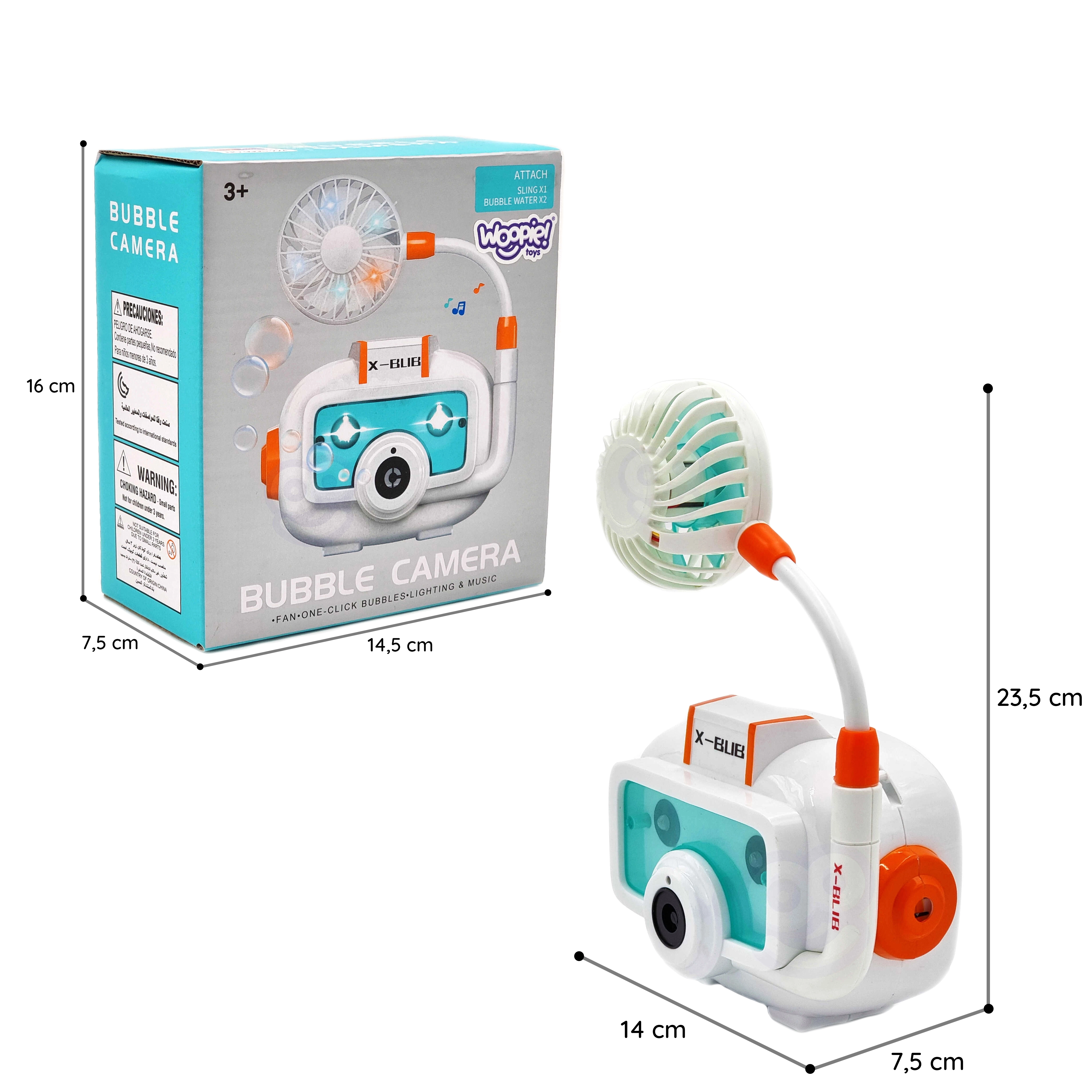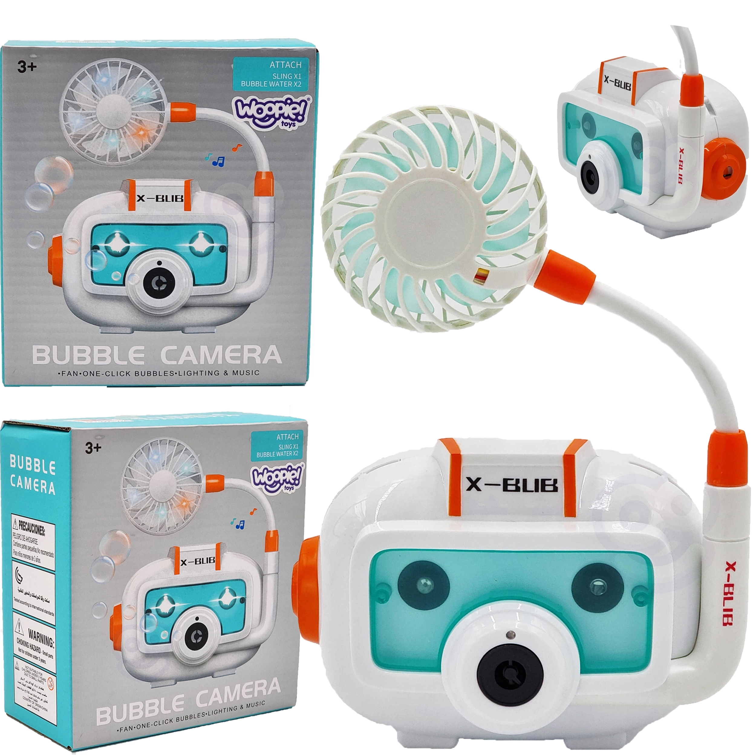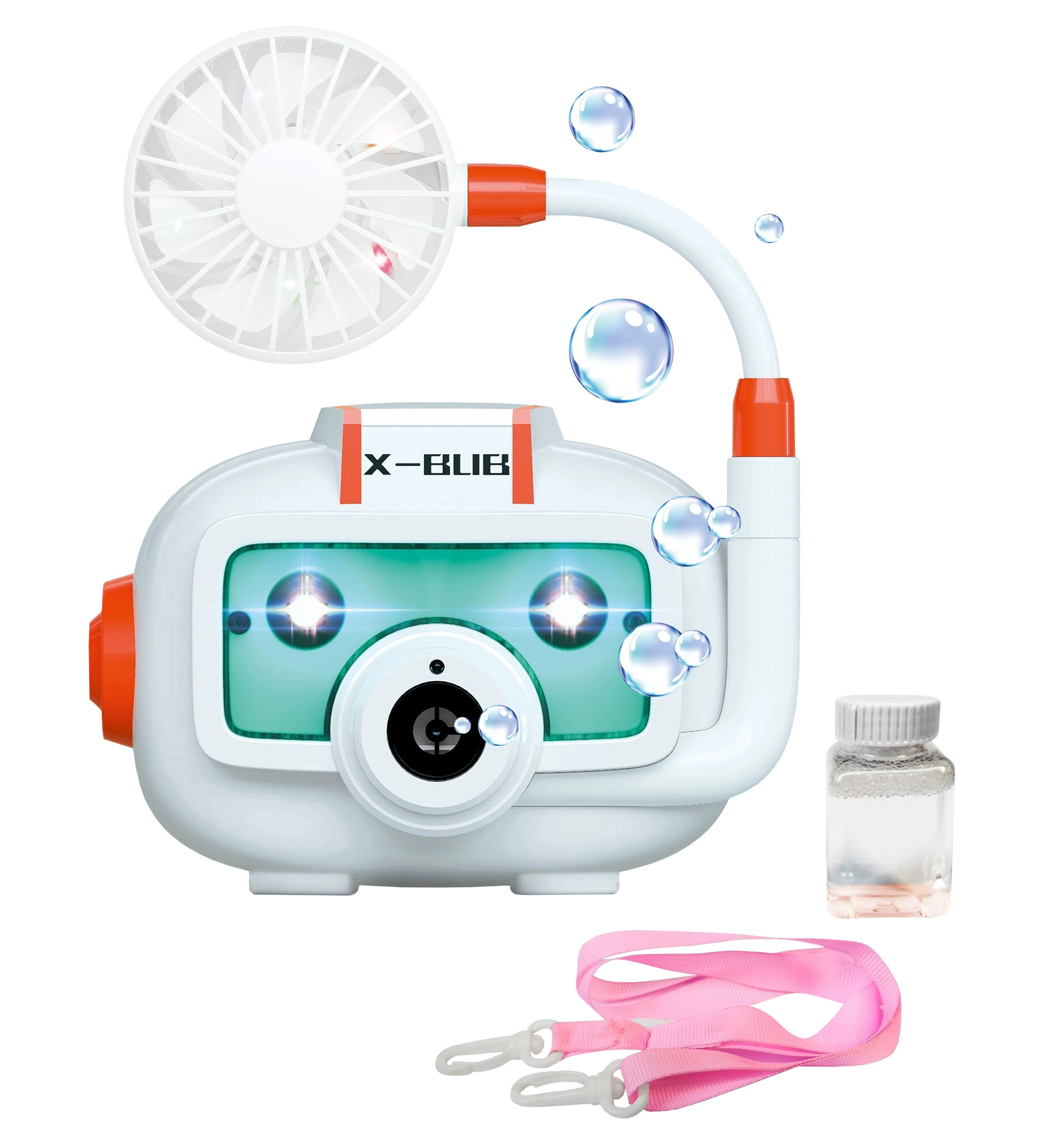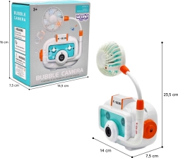 Kompakts korpuss fotoaparāta formā, praktiska kakla aukliņa un trauciņi šķīdumam padara to par ideālu rotaļlietu gan ārā, gan svinībās.