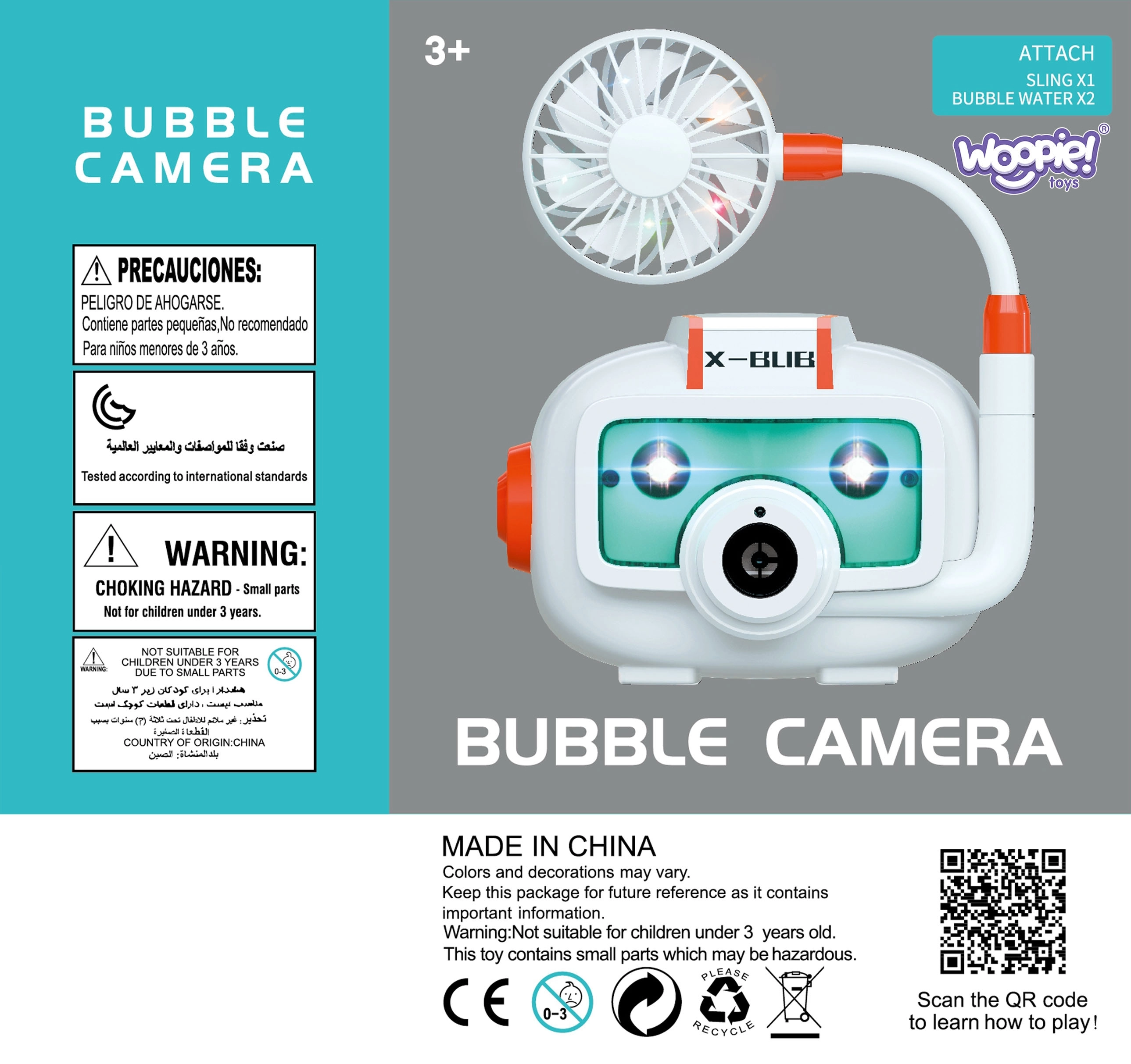 Uzbur prieku ar stilīgu burbulīti retro fotoaparāta formā. Atliek tikai ieliet šķīdumu, ieslēgt un ļauties mirdzošu burbuļu lietum. Krāsainie LED efekti, kas atgādina fotoaparāta zibspuldzi, un patīkama melodija piešķir katrai spēlei svinīgu noskaņu – gan mājās, gan ārā.