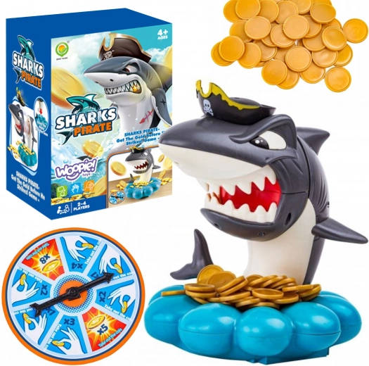Iemetiet zelta monētas gliemežvāka pamatnē, iegrieziet ratu ar bultiņu un izņemiet tieši tik monētu, cik uzrādīts. Taču uzmanīgi – haizivs sargā savu pirātu dārgumu un var jebkurā brīdī izlekt. Tas, kurš aktivizē haizivi, zaudē. Vienkārši noteikumi, spriedze katrā gājienā un saistoši skaņas efekti padara to par ideālu ģimenes spēli.