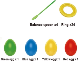 - - Komplektā ietilpst krāsainas olas, krāsainas nūjiņas un riņķi