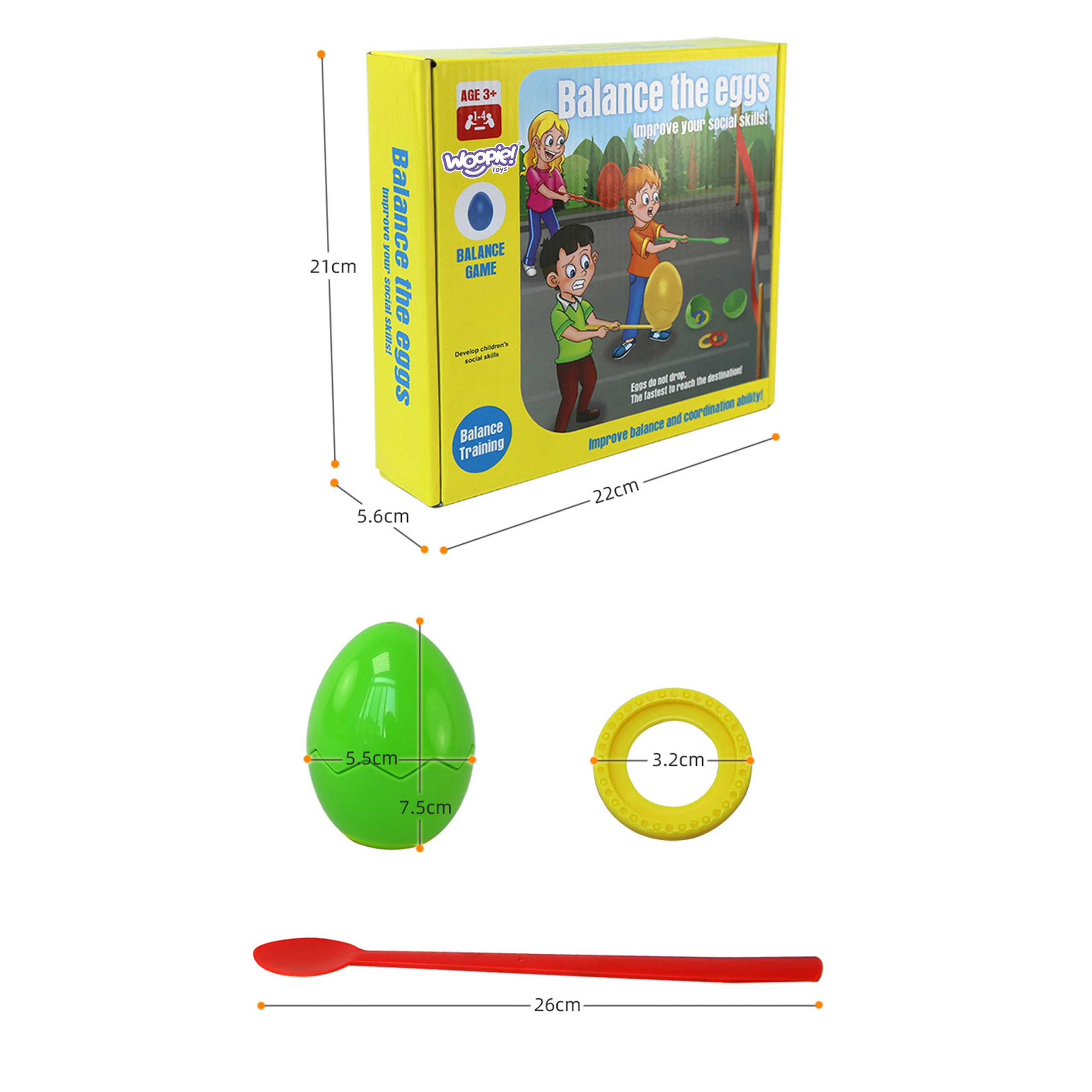 Woopie prasmju spēle Līdzsvarojošās olas ir lielisks veids, kā izklaidēt bērnus gan individuāli, gan grupā. Šī spēle uzlabo kustību koordināciju un lokanību, pateicoties olas turēšanai uz nūjiņas un kustībām ar to.