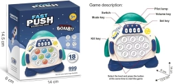 Elektroniskā spēle POP IT Raķete ir paredzēta bērniem un pieaugušajiem, kuri meklē jautru veidu, kā atslābināties. Šī rotaļlieta ir kompakta un viegli pārnēsājama, tāpēc to var vienmēr turēt pa rokai. Tā palīdz attīstīt domāšanu, uzlabot roku veiklību un roku-acu koordināciju.
