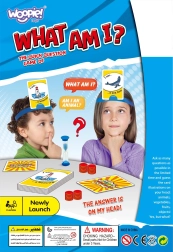WOOPIE Uzmini, kas es esmu? ir aizraujoša ģimenes un izglītojoša spēle, kurā uz galvas ir galvas stīpa ar kartīti, un ar gudri uzdotiem jautājumiem jānoskaidro, kas vai kas tu esi. Pateicoties vienkāršiem noteikumiem un pievilcīgiem attēliem, bērni to ātri saprot un gūst daudz prieka un zināšanu.