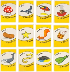 Ilustrētās kartītes ar dzīvniekiem un priekšmetiem bērniem atvieglo orientēšanos un motivē uzdot jautājumus. Skaidri attēli un vienkārši jēdzieni padara spēli saprotamu jau no trīs gadu vecuma.