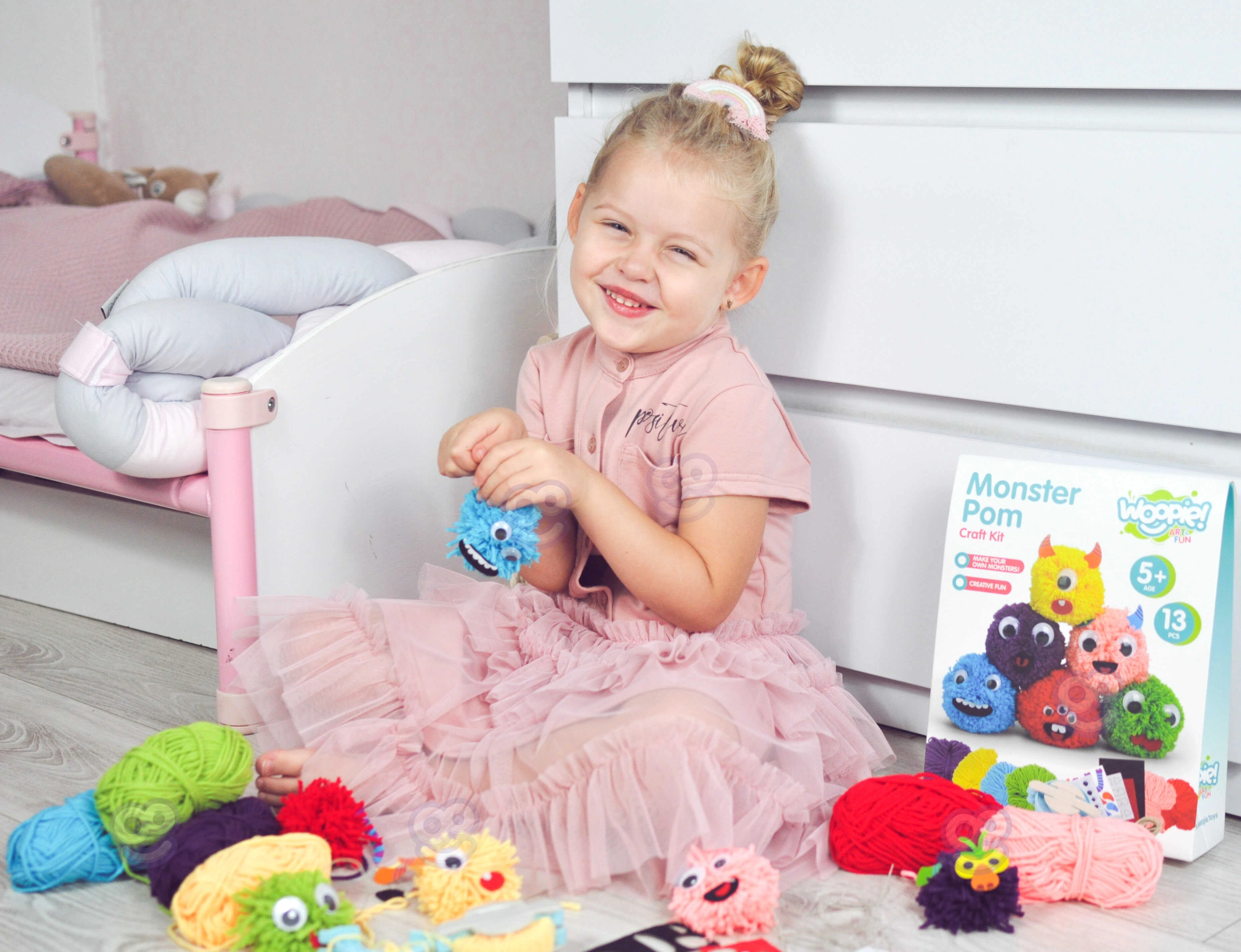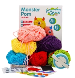 Atklājiet neierobežotas iespējas veidot savus briesmoņus ar radošo komplektu Monster Pom! Bērni var izpausties un radīt savas radībiņas pēc savas fantāzijas. Ar speciālo pomponu veidotāju un dažādkrāsainajiem diegiem tiek izveidota pamatforma, ko pēc tam papildina ar acīm, ragiem un citām uzlīmēm. Radošais process ir ne tikai aizraujošs, bet arī veicina sīko motoriku un radošumu. Kopā ar draugiem bērni var izveidot veselu briesmoņu armiju un izdomāt tiem piedzīvojumus.