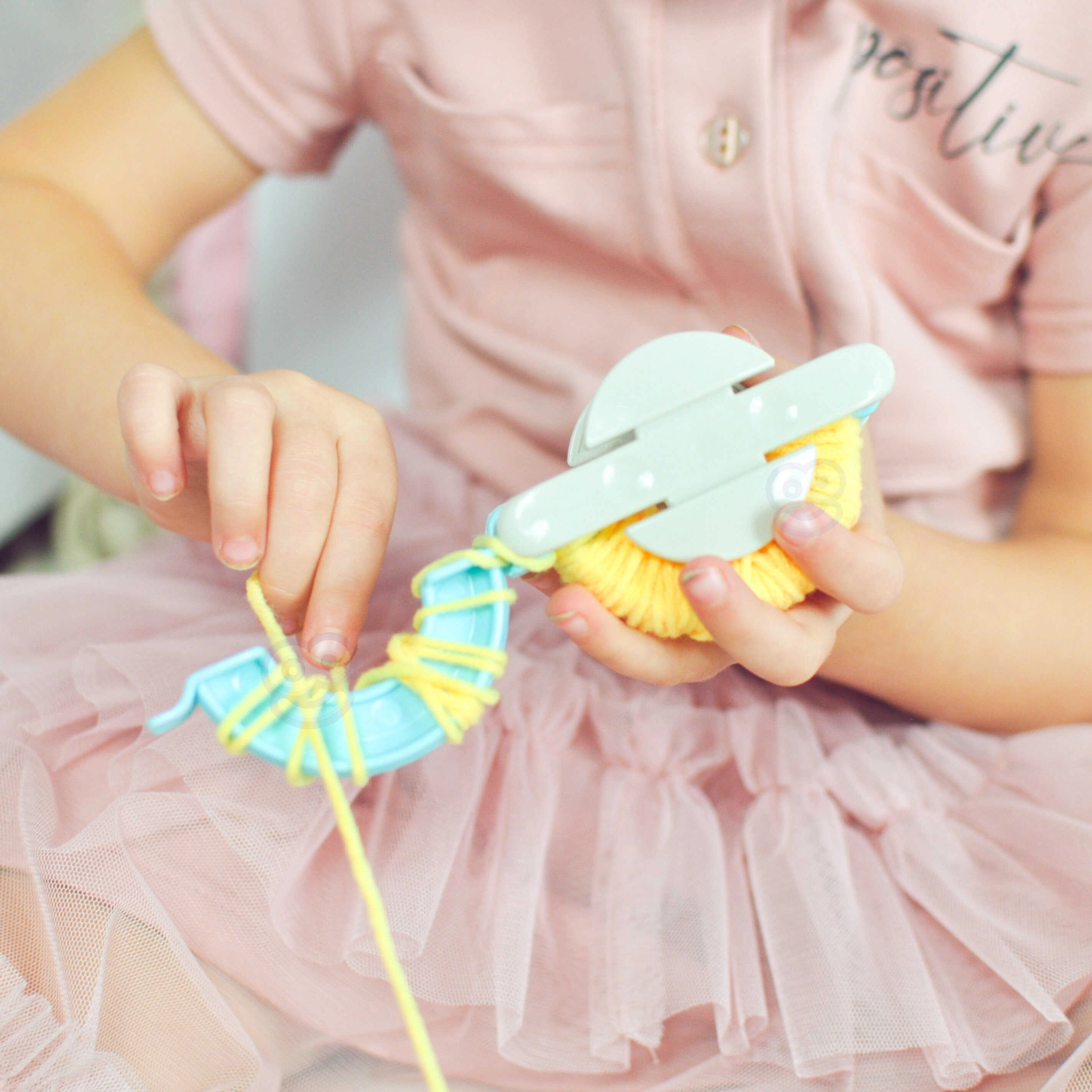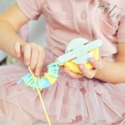 Komplektā ir iekļauts īpašs pomponu veidošanas rīks, kas nodrošina ātru un vienkāršu izgatavošanu.
