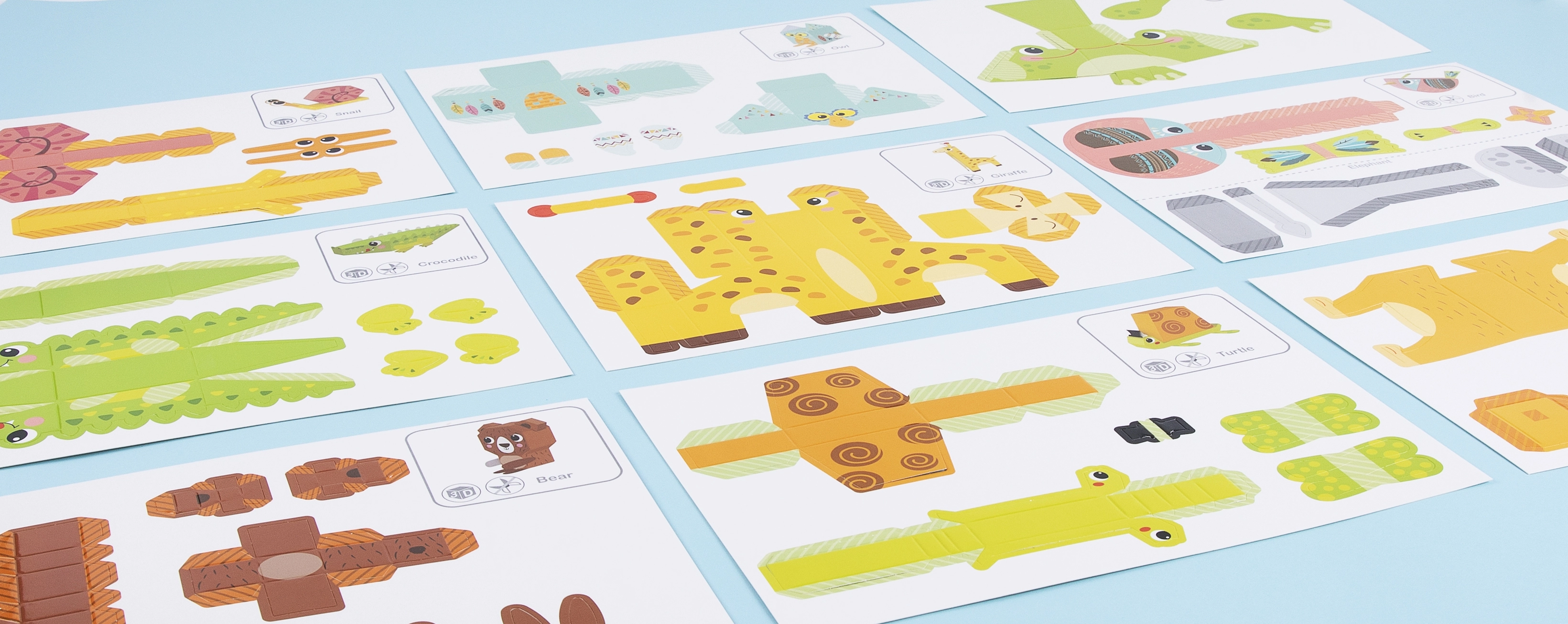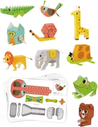 Šis radošais komplekts nodrošina visu, kas bērniem nepieciešams košu 3D papīra dzīvnieciņu izgatavošanai. Uz 5 kartēm ir detaļas 10 modeļiem, kuras var viegli izlauzt ar roku – bez šķērēm. Salikšana ir intuitīva: salocīt, uzklāt līmi norādītajās vietās un savienot.