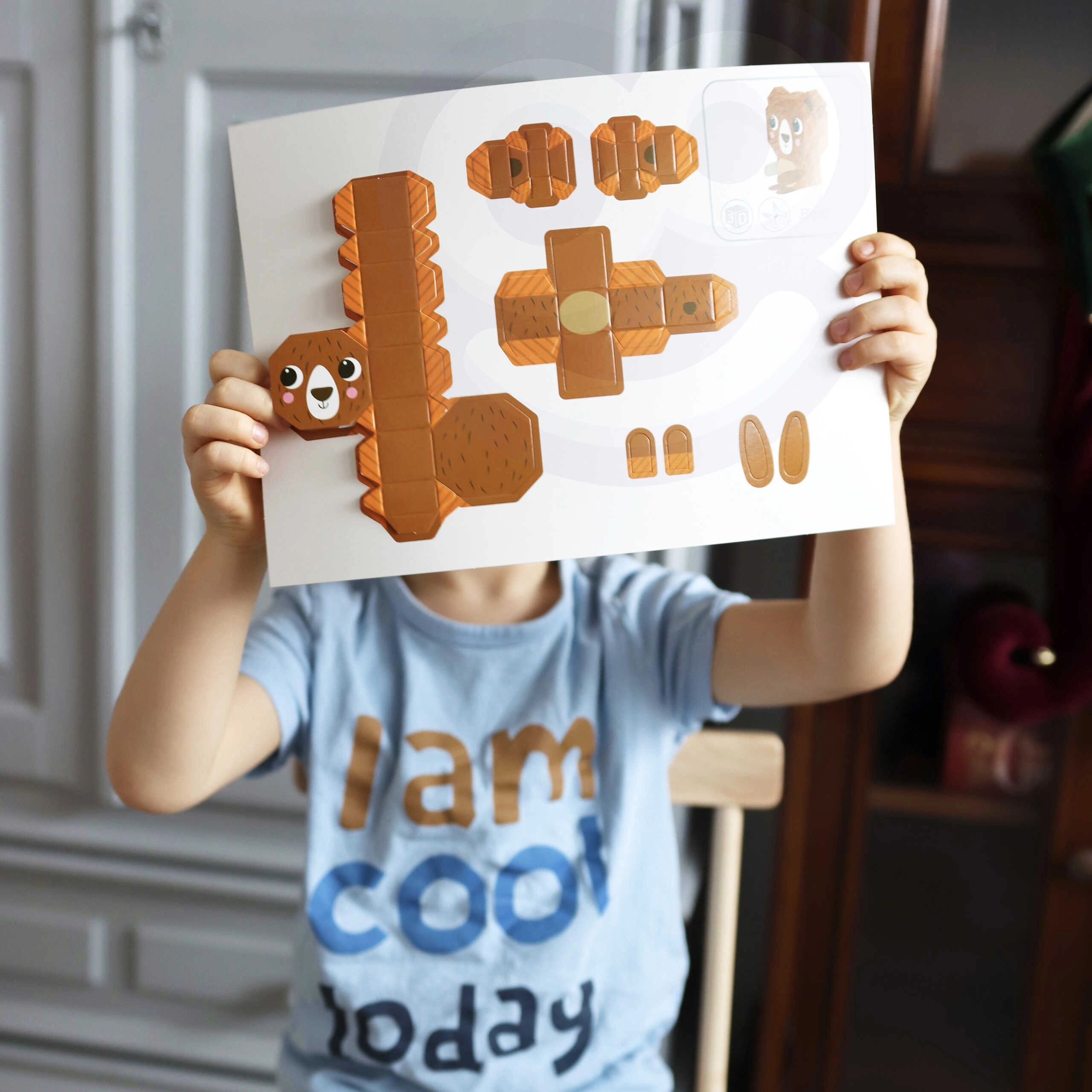 Detal̄as vienkārši izlauž ar roku, saloka pa pārtrauktajām līnijām un salīmē norādītajās vietās. Droši un saprotami arī mazākiem bērniem.