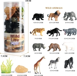 - Pilns komplekts: 12 savvaļas dzīvnieku figūriņas + 2 augi + 2 klintis (kopā 16 daļas)