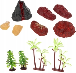 Daudzveidīgs dinozauru, koku, akmeņu un lavas komplekts ļauj veidot izstrādātas ainas un jautrā veidā apgūt sugu nosaukumus.
