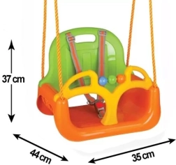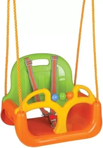 Šūpoles 3 vienā ir lieliska izvēle vecākiem, kuri vēlas drošu un ilgtermiņa risinājumu izklaidei dārzā un telpās. Pateicoties modulārajai sistēmai, var viegli noņemt atzveltni un priekšējo kāju aizsargbarjeru, lai pielāgotu sēdekli bērna vecumam un prasmēm. Integrētās jostas notur mazā pasažiera droši un ērti, savukārt izturīgi plastmasas materiāli bez asām malām nodrošina drošību un vieglu kopšanu.