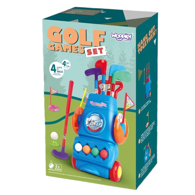Bērnu golfa komplekts Woopie ir lieliska izvēle laika pavadīšanai ne tikai dārzā, bet arī mājās. Produkts ir piemērots bērniem no 3 gadu vecuma un ietver 4 golfa nūjas, 4 bumbiņas dažādās krāsās un divas bedrītes ar karodziņiem. Komplektam ir praktiski riteņi ērtai pārvadāšanai.
