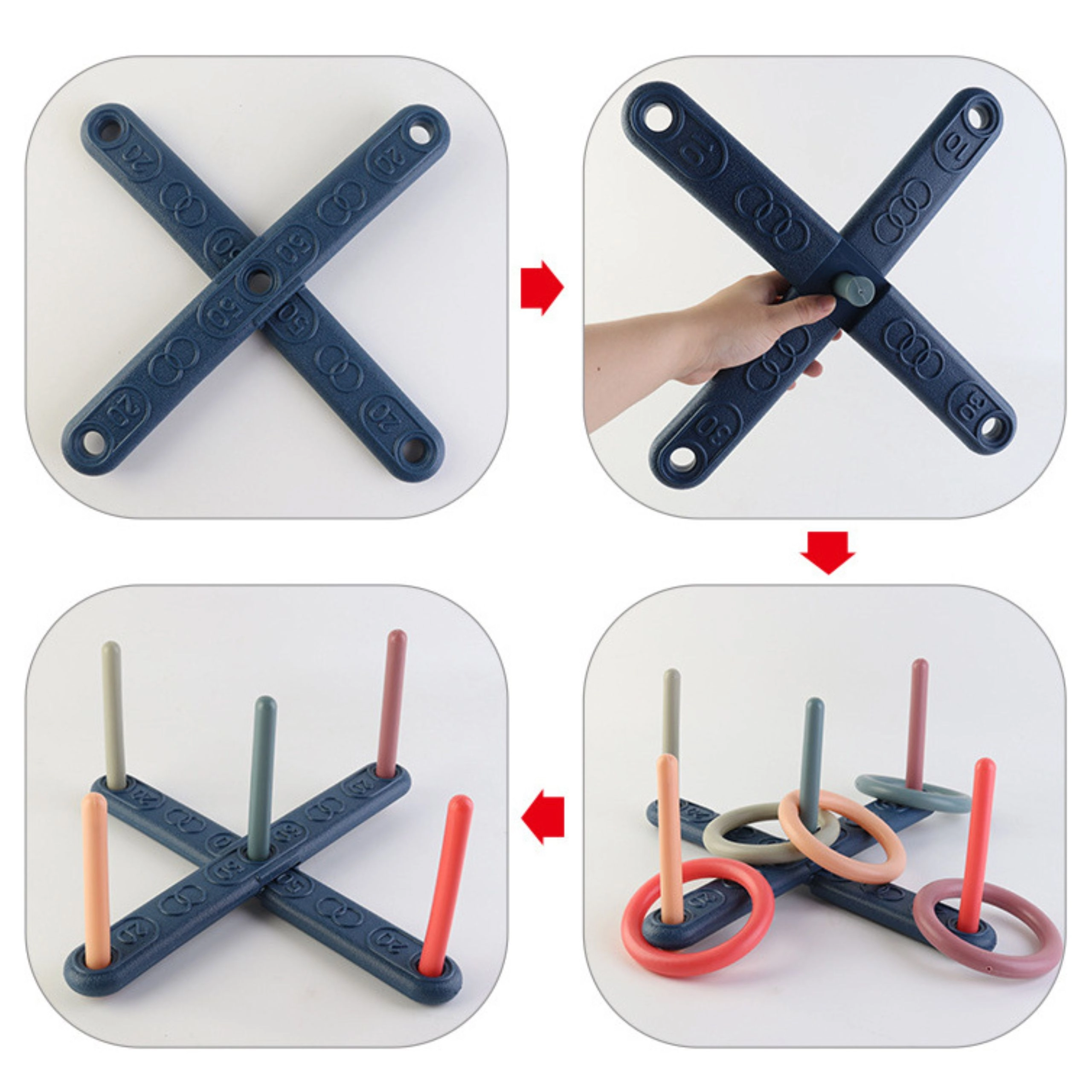- Prasmju attīstība: Metot riņķus uz mietiņiem, bērni un pieaugušie trenē motoriku.