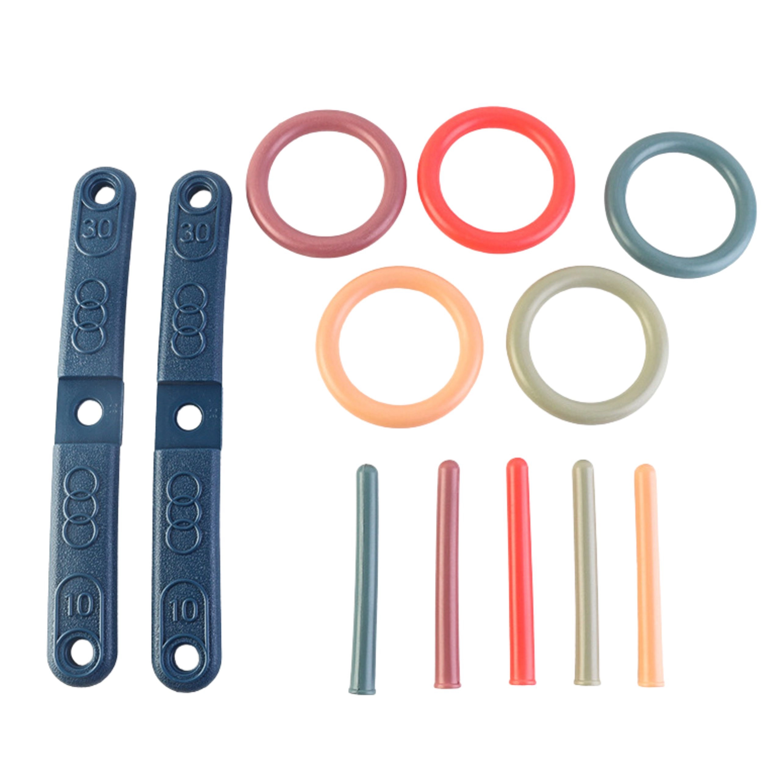 - Iepakojumā: 5 mešanas riņķi, 5 dažādās krāsās mietiņi.