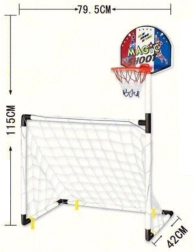 - 2 vienā – pilns sporta komplekts: basketbols + futbola vārti + bumba