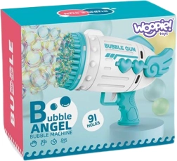WOOPIE burbuļu pistole ir lieliska izklaide bērniem no 3 gadu vecuma. Pateicoties 91 atverei, tā veido burbuļus ar augstu intensitāti, nodrošinot iespaidīgu efektu un daudz prieka.
