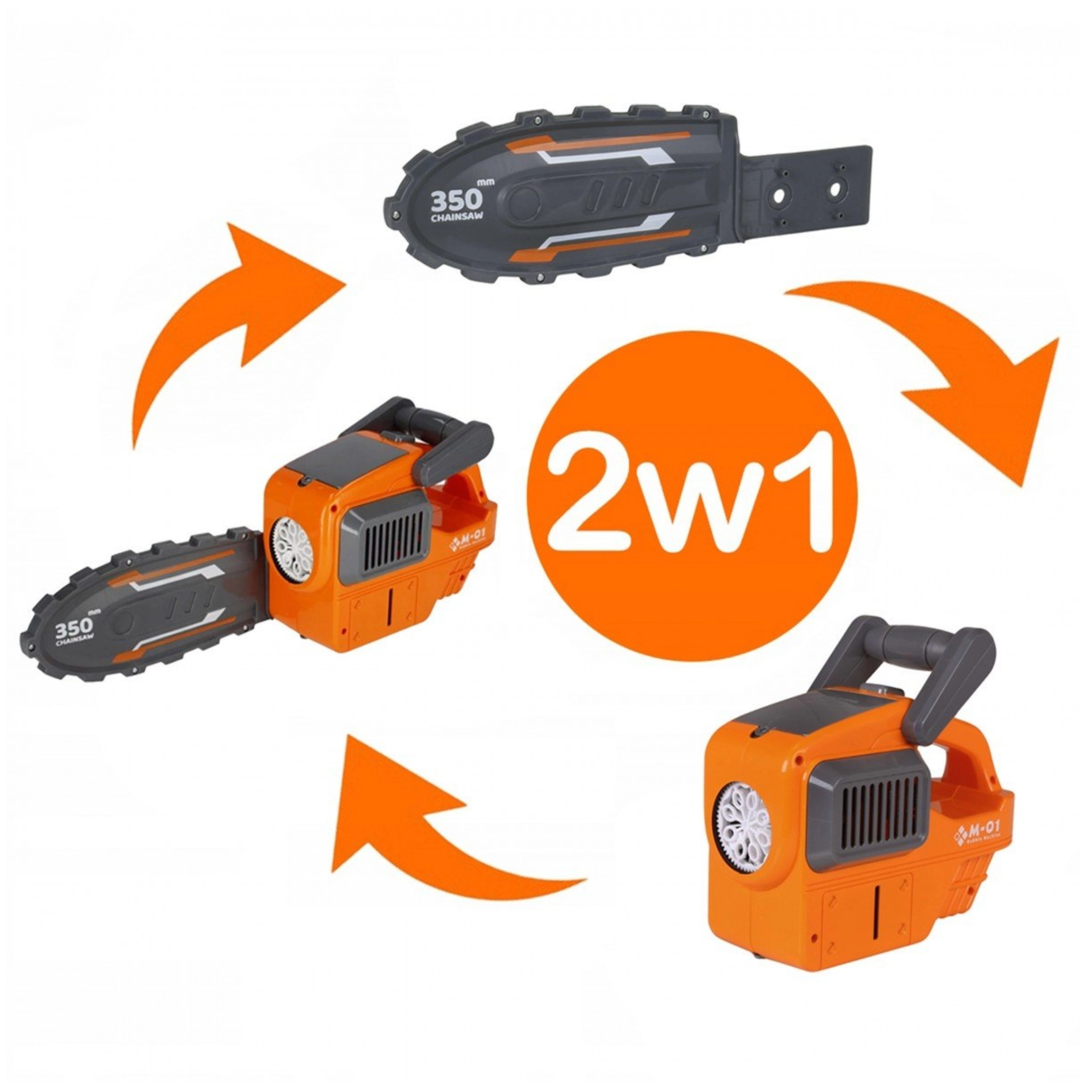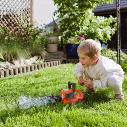 Ātra pārvēršana no zāģa izskata uz stilīgu burbuļu ģeneratoru. Viena rotaļlieta, divi pievilcīgi rotaļu veidi.